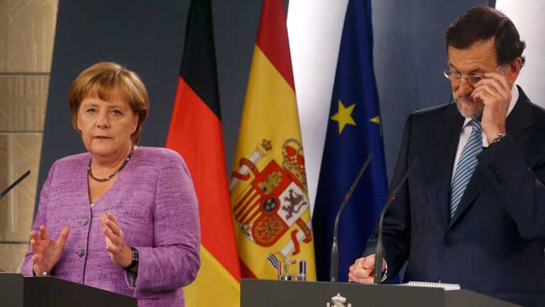 06/09/2012 00:05:37El foco de la actualidad informativa ha estado hoy en dos lugares en los que se decidía el futuro de la moneda única. En la Moncloa, el Presidente Rajoy ha recibido a la canciller alemana Angela Merkel. Y en Francfort, el Presidente del BCE, Mario Draghi, ha hecho el anuncio más esperado: el Banco Central Europeo comprará deuda "sin un volumen máximo", hasta que se logre el objetivo de reducir las primas de riesgo. La rueda de prensa de Draghi era simultánea a la que ofrecían en Moncloa la canciller Merkel y el Presidente Rajoy. El jefe del Ejecutivo español no ha hecho valoraciones, a la espera de conocer en detalle las decisiones del Banco Central Europeo. Sí ha mostrado su clara voluntad de seguir atajando el déficit. -- La reacción en los mercados a las palabras de Dragui era fulminante. La prima de riesgo bajaba y la bolsa iniciaba una escalada alcista. -- El quinto informe forense del caso Bretón ratifica que los huesos de Las Quemadillas son humanos y corresponden a niños de unos 6 y 2 años. La ausencia de ADN impide confirmar si corresponden a Ruth y José o la causa de la muerte. El juez interrogará el miércoles a José Bretón, imputado por doble asesinato. -- El metro de Pekín expone, en una de sus estaciones, más de 2.000 objetos peligrosos incautados a sus viajeros. Rifles de asalto, metralletas o ballestas, son algunas de las armas requisadas por la policía en un suburbano que utilizan cada día 7 millones de personas.