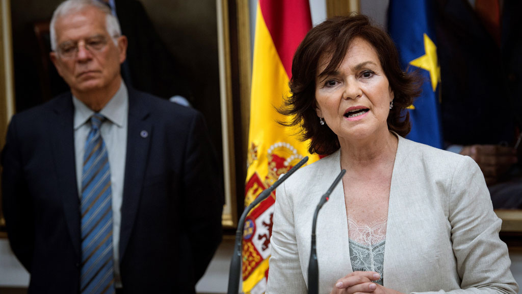 La vicepresidenta ha sido la primera en utilizar esa expresión para remarcar la mayoría femenina en el nuevo gobierno de Pedro Sánchez.-- El siguiente paso ha sido el traspaso de carteras en los diferentes ministerios.-- Pablo Iglesias ha dicho hoy que Pedro Sánchez ha tardado 24 horas en olvidarse de quien le ha hecho presidente.-- El portavoz del PP en el congreso ha pedido a Pedro Sánchez que convoque el debate del estado de la nación antes del verano, porque es el compromiso al que llegó Mariano Rajoy.-- Los Reyes se reunirán con Donald Trump en Washington el 19 de junio.-- La policía Nacional ha detenido en la Línea de la Concepción a Antonio Tejón considerado uno de los mayores narcotraficantes de hachís de la zona.-- Sigue declarando el acusado del asesinato de una niña de 13 años en Vilanova i la Geltrú.