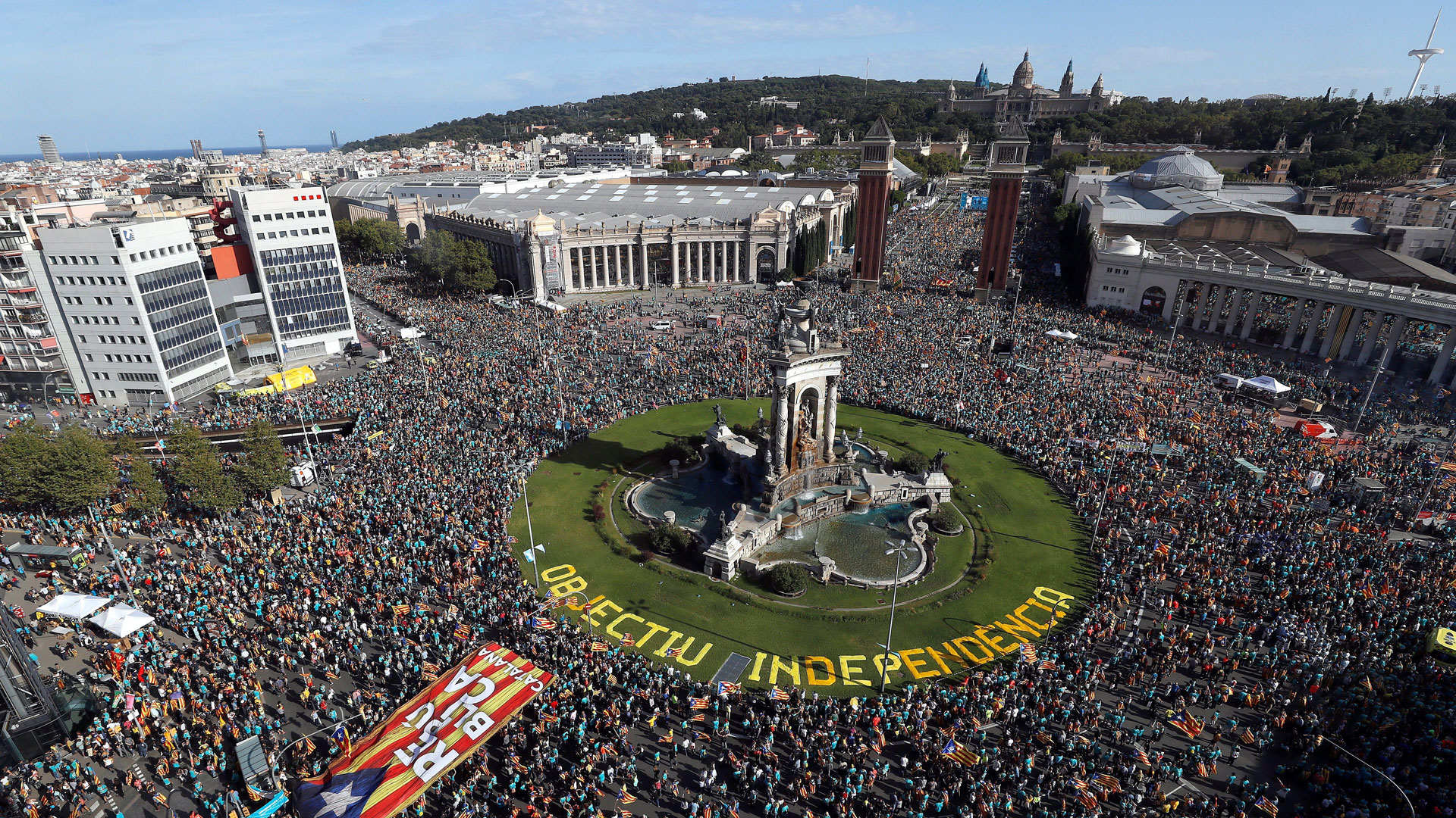 Otra Diada más, el independentismo catalán sale a la calle. La Guardia Urbana habla de 600.000 participantes, un 40% menos que en 2018. -- El himno...