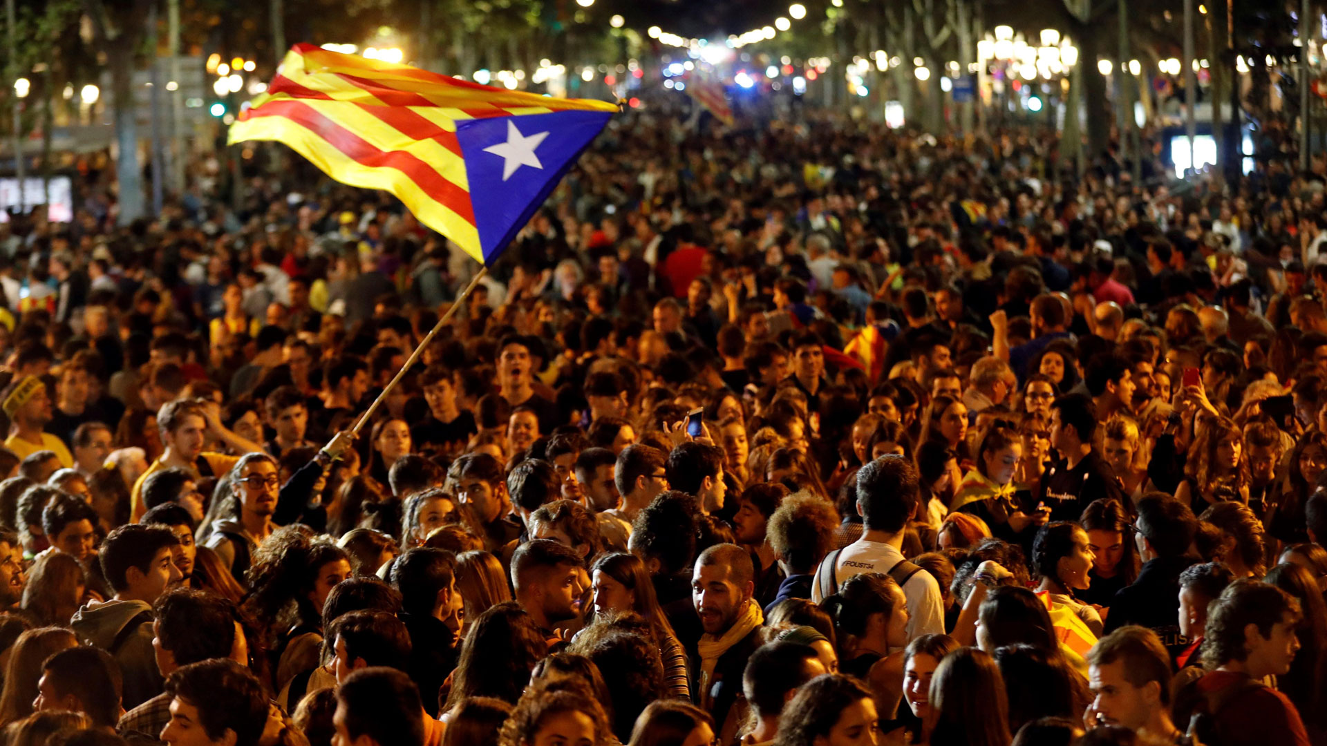17/10/2019 00:05:53Multitudinaria manifestación convocada por los CDR en los jardines de Salvador Espriu en el Paseo de Grácia de Barcelona. -- Quim Torra se ha...