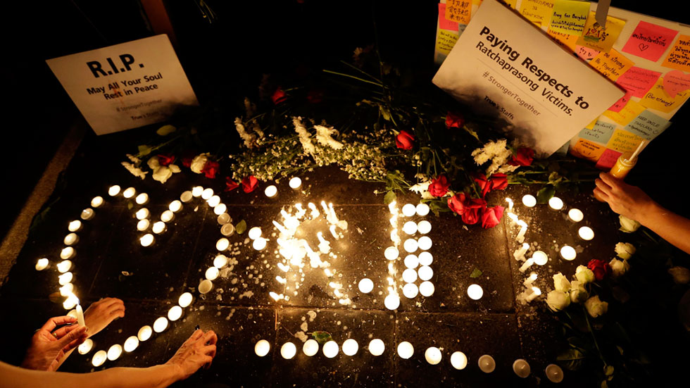 Murieron, al menos 20 personas y hay más de 120 heridos.... Hoy se ha arrojado un artefacto casero similar por un puente de Bangkok, sin causar víctimas. 23 países, incluyendo Estados Unidos y Francia, han pedido a sus nacionales que extremen las precauciones.