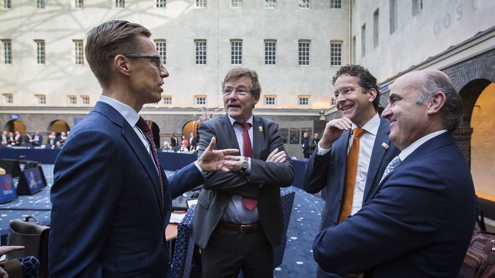 Un micrófono ha captado esa conversación entre Luis de Guindos y el presidente del Eurogrupo en Amsterdam, en la que el ministro de economía en...