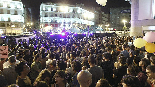 03/08/2011 00:04:15Cientos de indignados han protestado hasta altas horas de la madrugada en los accesos de la Puerta del Sol, completamente tomada por un fuerte dispositivo policial. Mientras, los miembros del 15M han decidido en la asamblea que han celebrado en la Plaza Mayor que mantienen allí un punto de información y que no piensan irse hasta que se les permita entrar otra vez en Sol. -- Este martes, el diferencial del bono español a 10 años con el alemán superó los 400 puntos básicos, su nivel máximo desde la creación del euro y la bolsa cayó un 2%. -- Estados Unidos ha evitado "in extremis" la suspensión de pagos. El presidente Obama ya ha ratificado el acuerdo alcanzado entre demócratas y republicanos y que ayer también superó el trámite del Senado -- El Consejo de Seguridad de la ONU sigue sin responder a la represión del régimen sirio contra los manifestantes. La reunión de esta madrugada ha vuelto a terminar sin acuerdo. Los 15 miembros del Consejo volverán a sentarse hoy a negociar. -- Se espera que los resultados de la autopsia aclaren las causas de la muerte de un matrimonio de septuagenarios en el barrio madrileño de Vallecas -- DEPORTES: Real Madrid y Barcelona siguen de pretemporada. Los blancos juegan contra el Guangzhou y el Barcelona, de gira por Estados Unidos, se medirá al Chivas de Guadalajara.
