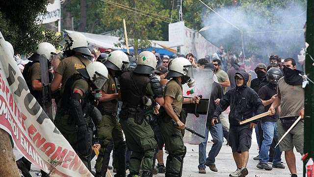 16/06/2011 00:04:12Los indigandos de Barcelona se concentraron frente a la comisaría donde están los 6 detenidos tras los altercados de ayer en el Parlamento catalán. Los diputados salieron sin incidentes al terminar el pleno. La cámara intentará recuperar hoy la normalidad durante la segunda jornada del debate de los presupuestos. Todos los grupos parlamentarios han condenado los actos violentos. El movimiento 15-M se desvinucla y rechaza lo ocurrido.-- Continúa la vigilancia en Barcelona y se refuerza la seguridad en Valencia para evitar incidentes. Esta mañana será investido Francisco Camps como Presidente de la comunidad valenciana. Esperanza Aguirre y José Ramón Bouzá tomarán hoy posesión de sus cargos como Presidentes de Madrid y Baleares. Se constituyen las cortes de Catilla la Mancha, Cantabria y La Rioja.-- El primer ministro griego remodelará hoy el gobierno y pedirá un voto de confianza al parlamento. Papandreu remodela hoy su gobierno tras la tercera huelga general del año. Lo decidió ayer Papandreu tras fracasar las conversaciones con la oposición para formar un gobierno de unidad nacional y APTN tras la tercera huelga general del año para protestar contra los últimos recortes del gobierno. Hubo miles de manifestantes, 40 heridos y 25 detenidos. -- Turquía no cerrará sus fronteras a los refugiados sirios. Hasta el momento hay casi 8.500 y según testigos, otros mil están intentando huir de Siria por esa frontera. La ONU ha reconocido ejecuciones, arrestos masivos y torturas que han causado mil muertos y 10 mil detenidos en los últimos 3 meses. El Congreso español ha pedido al gobierno que estudie nuevas sanciones. DEPORTES: La Sub-21 ayer venció a la República Checa con dos goles de Adrián, un buen resultado después del empate ante Inglaterra. "La Rojita" es líder de su grupo y mantiene intactas las posibildades de acceder a la fase final del Europeo de Dinamarca para clasificarse para los Juegos de Londres de 2012.-- La lucha por el ascenso entre el Granada y el Elche sigue viva después del empate a cero en Los Cármenes, donde se presenció un final emocionante en el que el portero del Elche paró dos penaltis.