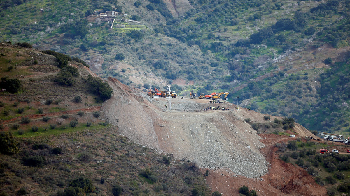 Esta es la máquina que perfora un túnel paralelo al pozo en el que cayó el pequeño Julen hace una semana. Se calcula que el niño está a 71 metros...