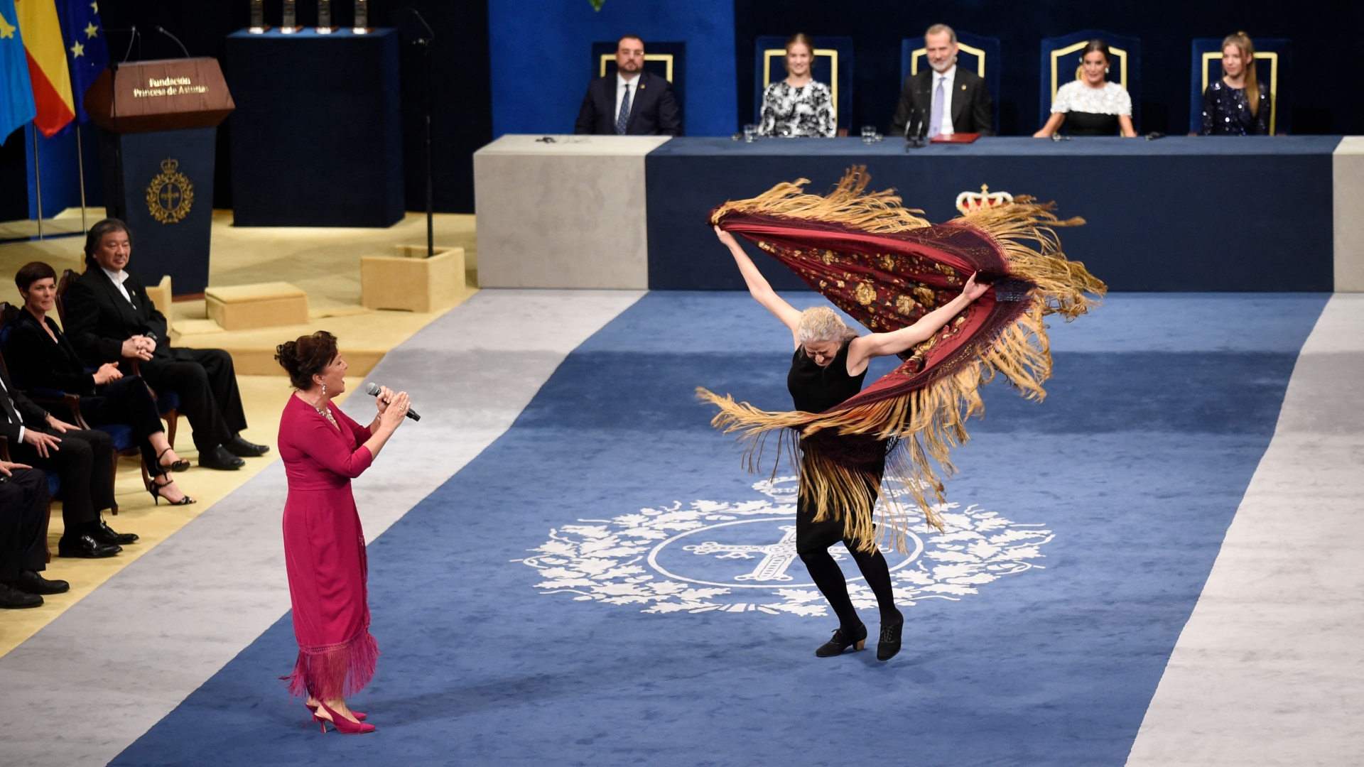 29/10/2022 00:04:36Uno de los momentos más emotivos de los Premios Princesa de Asturias de este año ha ido la actuación improvisada de Carmen Linares y María Pagés, cantaora y bailaora, para recoger su galardón. En otras categorías lo han recibido los padres del Aprendizaje Profundo de las máquinas, el equipo olímpico de refugiados, el periodista Adam Michnik, el dramaturgo Juan Mayorga o el arquéologo Eduardo Matos Moctezuma.