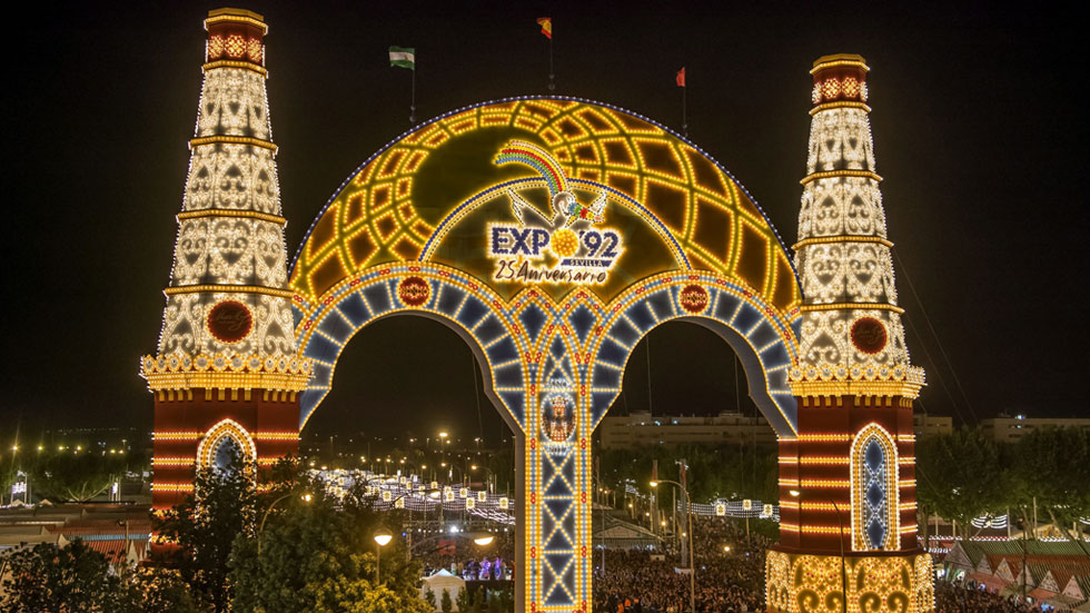 - A las doce en punto de la noche ha comenzado el alumbrado de la Feria de Sevilla. Y tal y como decidieron los sevillanos en referéndum, la Feria...