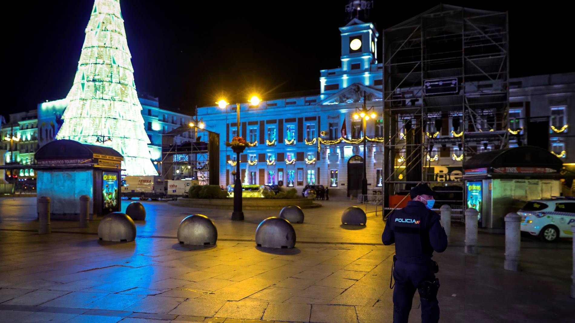 En unas horas las campanadas despedirán el año 2020 sin las tradicionales celebraciones por la pandemia -- En Madrid la Policía vigilará la Puerta del Sol para impedir el acceso -- Los contagios continúan subiendo. Ayer Sanidad notificó 17.600 nuevos positivos y 247 fallecidos. La incidencia más alta se registra en Baleares y Extremadura -- Hoy hace justo un año que China alertó de una neumonía inespecífica -- Reino Unido tiene previsto empezar el suministro de la vacuna de Pzifer/AstraZeneca el lunes -- La Cámara de los Lores aprueba definitivamente el divorcio entre la UE y Reino Unido -- España negocia contrarreloj con Londres para lograr un acuerdo sobre Gibraltar -- Tiempo invernal en España. Foto: EFE / Emilio Naranjo.