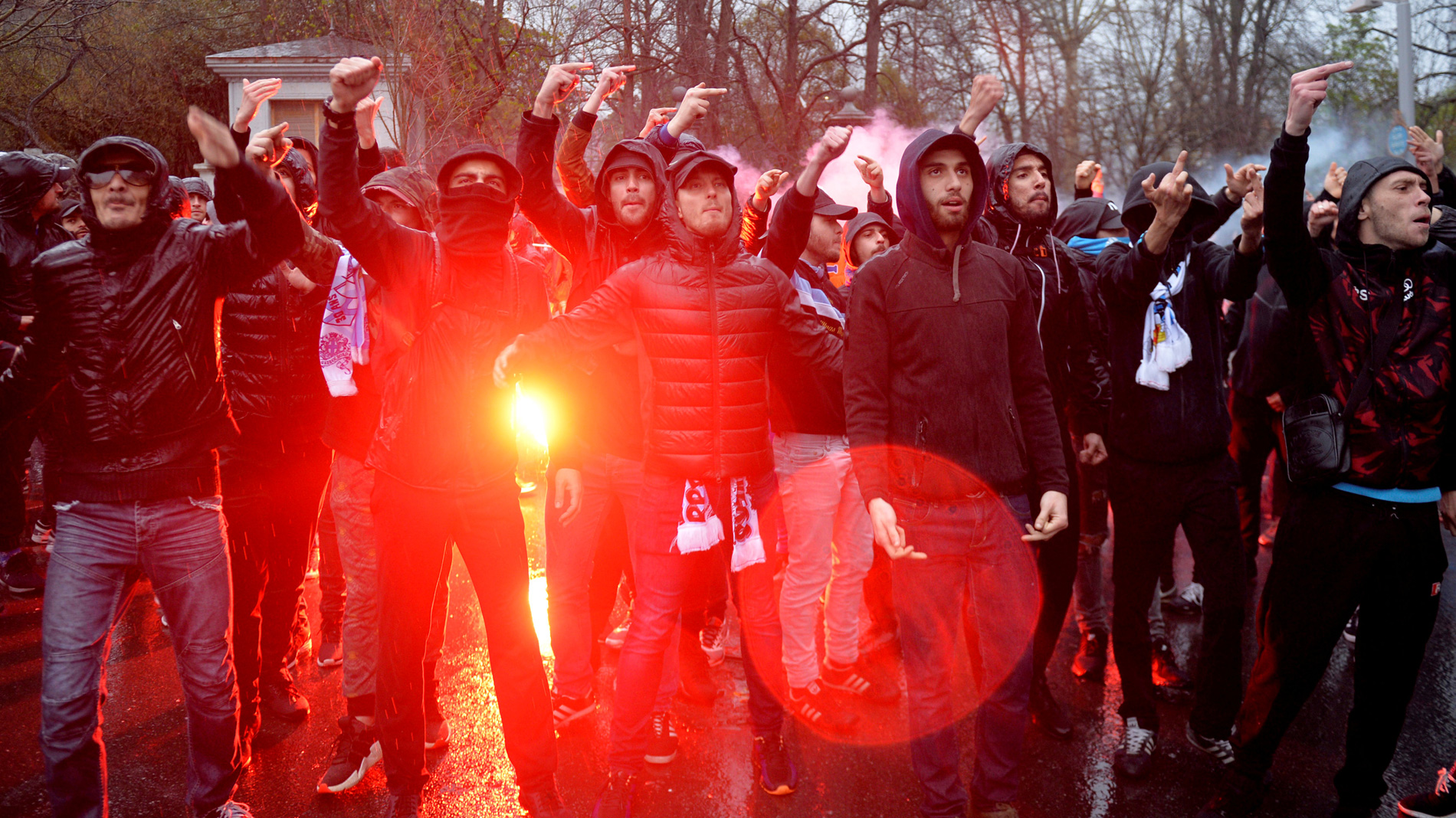 Los ultras del Olympique de Marsella lograron introducir bengalas en el interior de San Mamés