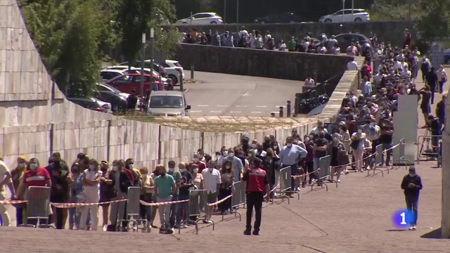 Cola para vacunarse en la ciudad de la cultura, en Santiago de Compostela. Han comenzado a vacunar al grupo de entre 49 y 40 años.