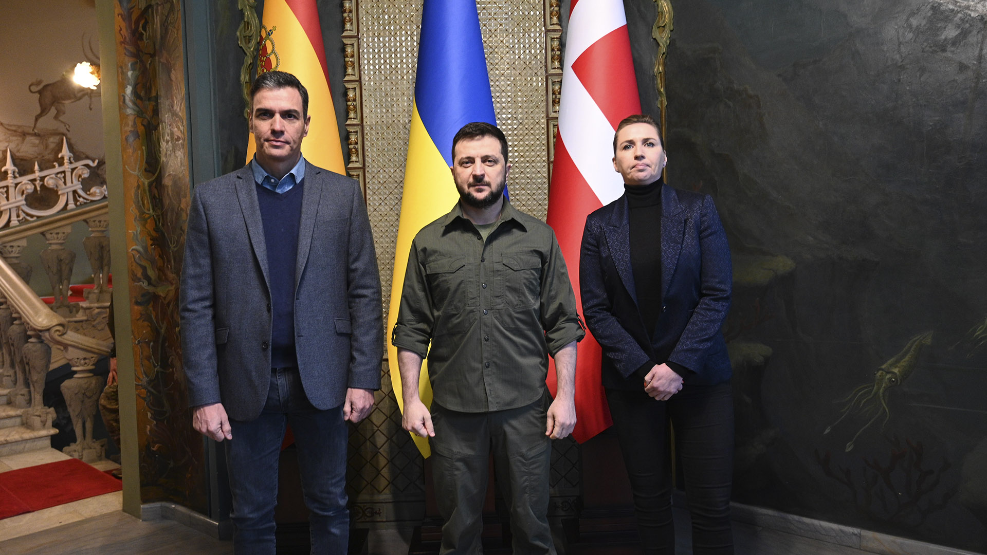 Es el encuentro en Kiev entre el presidente de Ucrania, Volodimir Zelensky, y el español Pedro Sánchez, que ha viajado con la primera ministra...