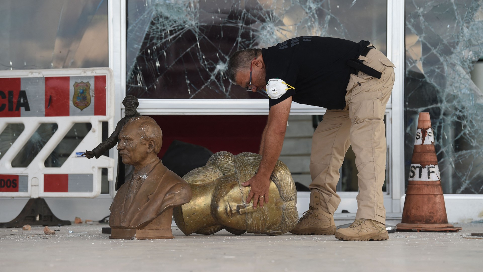 Los tesoros de la arquitectura moderna de Oscar Niemeyer fueron vandalizados, en una capital nacida en 1960. Valores millonarios para recuperar las obras de arte destruidas. Las piedras portuguesas del pavimento sirvieron para el asalto. Hay mármoles, mobiliario y esculturas arrasadas. Y una obra emblemática del pintor Di Cavalcanti con varias rasgaduras.