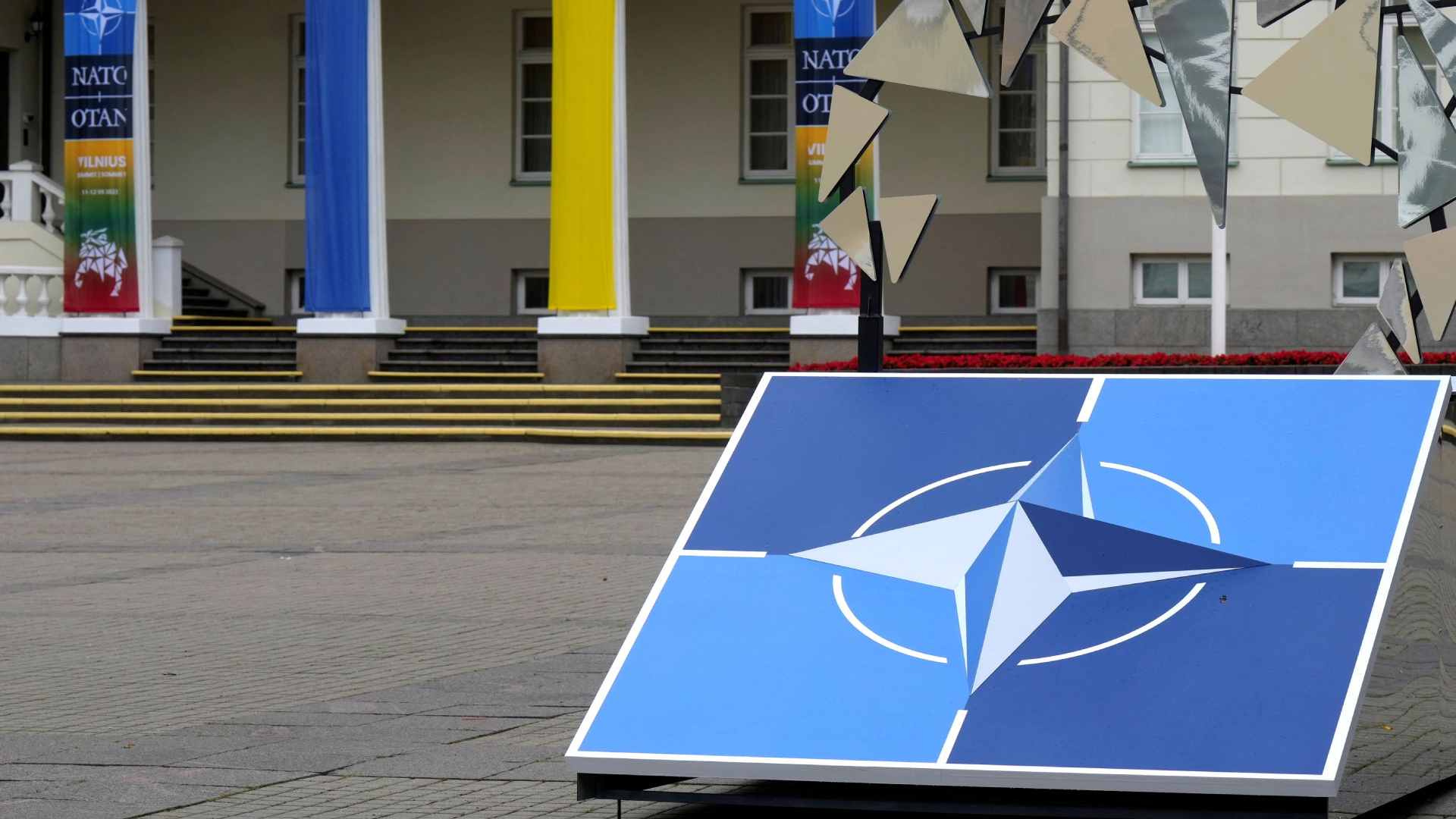Con un lobo de hierro, personaje mítico y leyenda de la fundación de Vilna y símbolo del país, da Lituania la bienvenida a la Alianza Atlántica en...