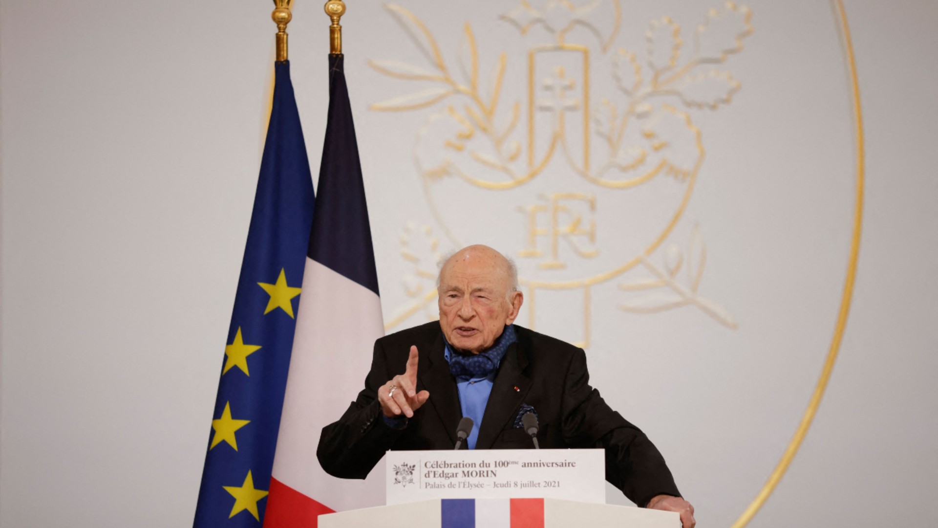 09/07/2021 00:01:24Hace cien años, el mundo se recuperaba de la gripe española...Los niños aún nacían con secuelas... Como Edgar Morin, quien nació muerto y tuvieron que reanimarlo durante 30 minutos... Ese niño vivió la recesión del 29, la Segunda Guerra Mundial, la llegada de Hitler al poder, la guerra de Vietnam, mayo del 68, vio nacer la radio, la televisión e Internet y ahora, en plena pandemia, acaba de cumplir 100 años...Francia lo está homenajeando por su contribución a la humanidad, como uno de los más grandes pensadores y filósofos... Y uno de los primeros que defendió la ecología y de defensa del planeta...Edgar Morin ha sido recibido también en el Elíseo por el presidente Macron quien lo ha definido como el gran humanista de Francia, y quien, a sus cien años, sigue regalando sonrisas y esperanza. FOTOGRAFÍA: Yoan VALAT / POOL / AFP.