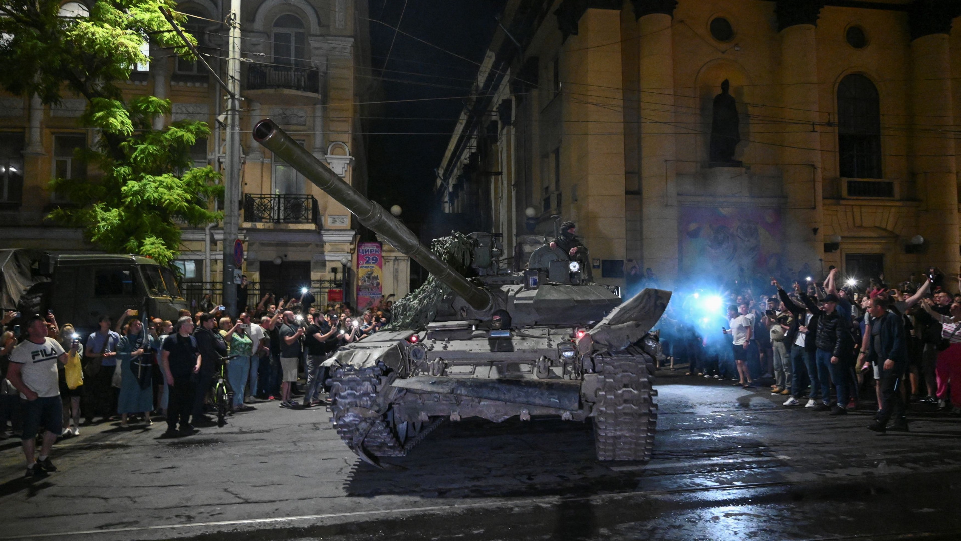 El momento en que los mercenarios de Wagner abandonan la ciudad de Rostov.