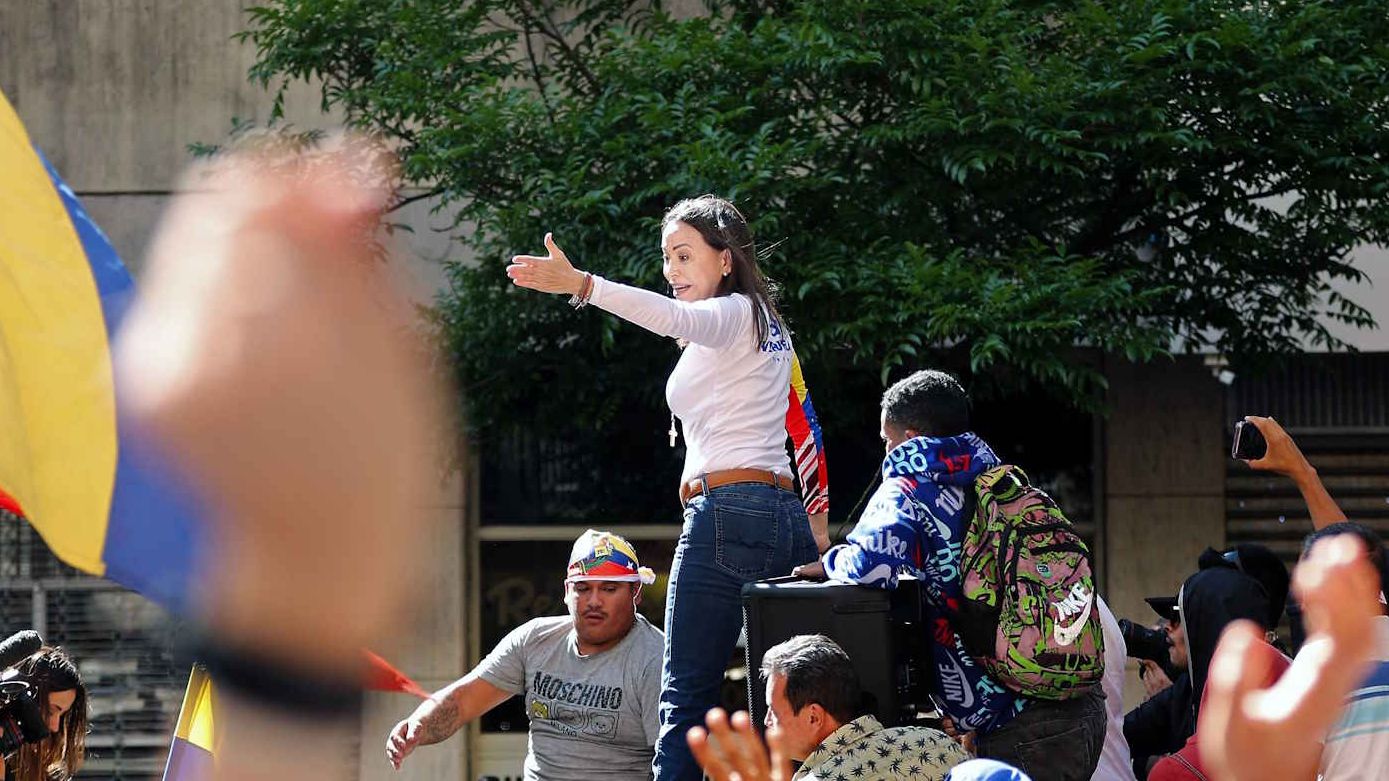 María Corina Machado reaparMaría Corina Machado reaparece en las marchas opositoras de Caracas para reivindicar el triunfo electoral de Edmundo...