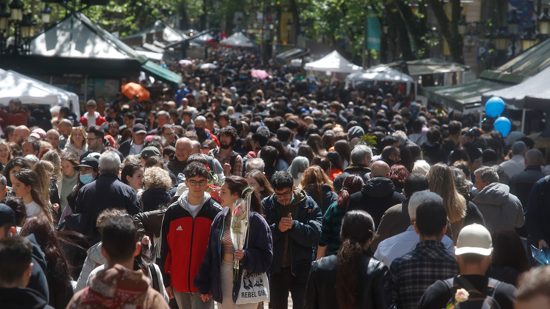 Miles de personas salen a la calle en Barcelona en un Sant Jordi sin apenas mascarillas a pesar de la multitud -- Es el primer fin de semana sin la...