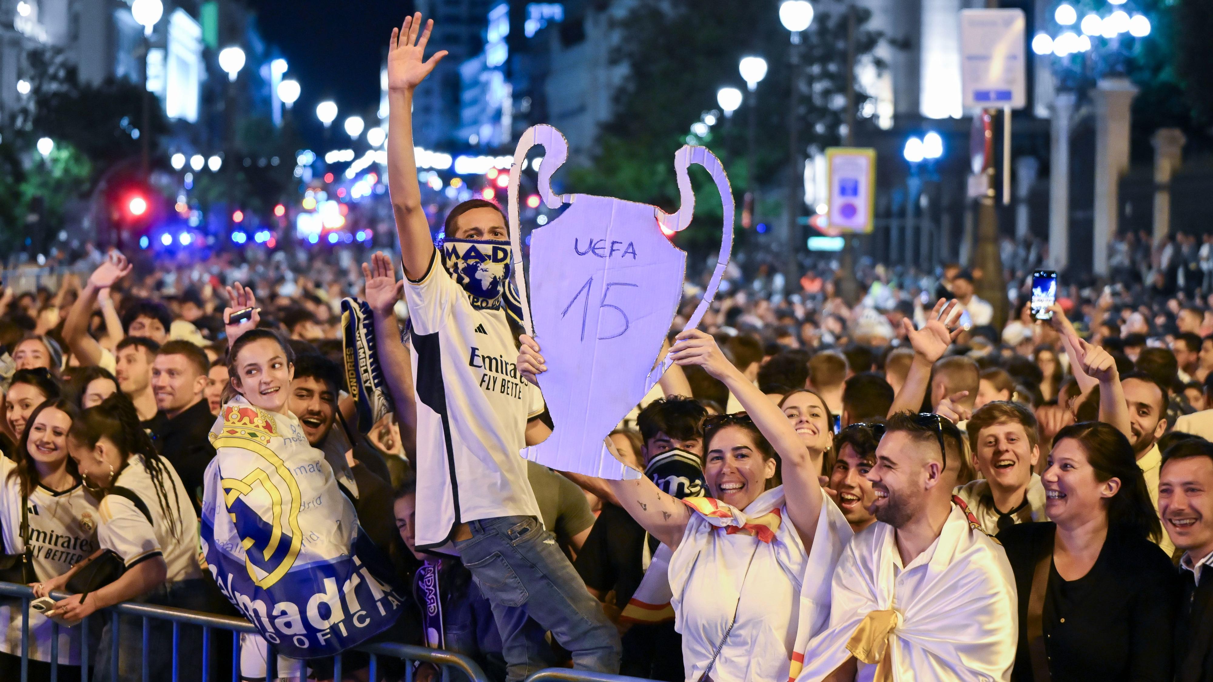 Miles de madridistas celebraron la decimoquinta copa de Europa del Real Madrid en Cibeles hasta altas horas de la madrugada. -- Se cumplen diez...