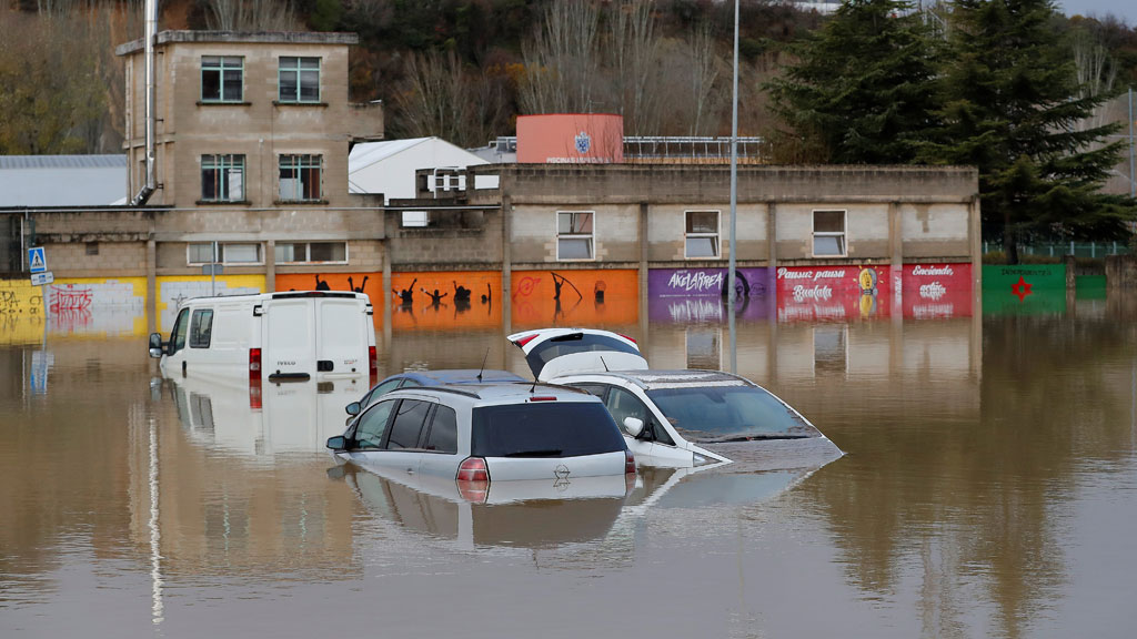 Fuerte crecida del Ebro a su paso por algunos puntos de la Ribera, en Navarra. El caudal puede alcanzar los 3.000 metros cúbicos por segundo a su...