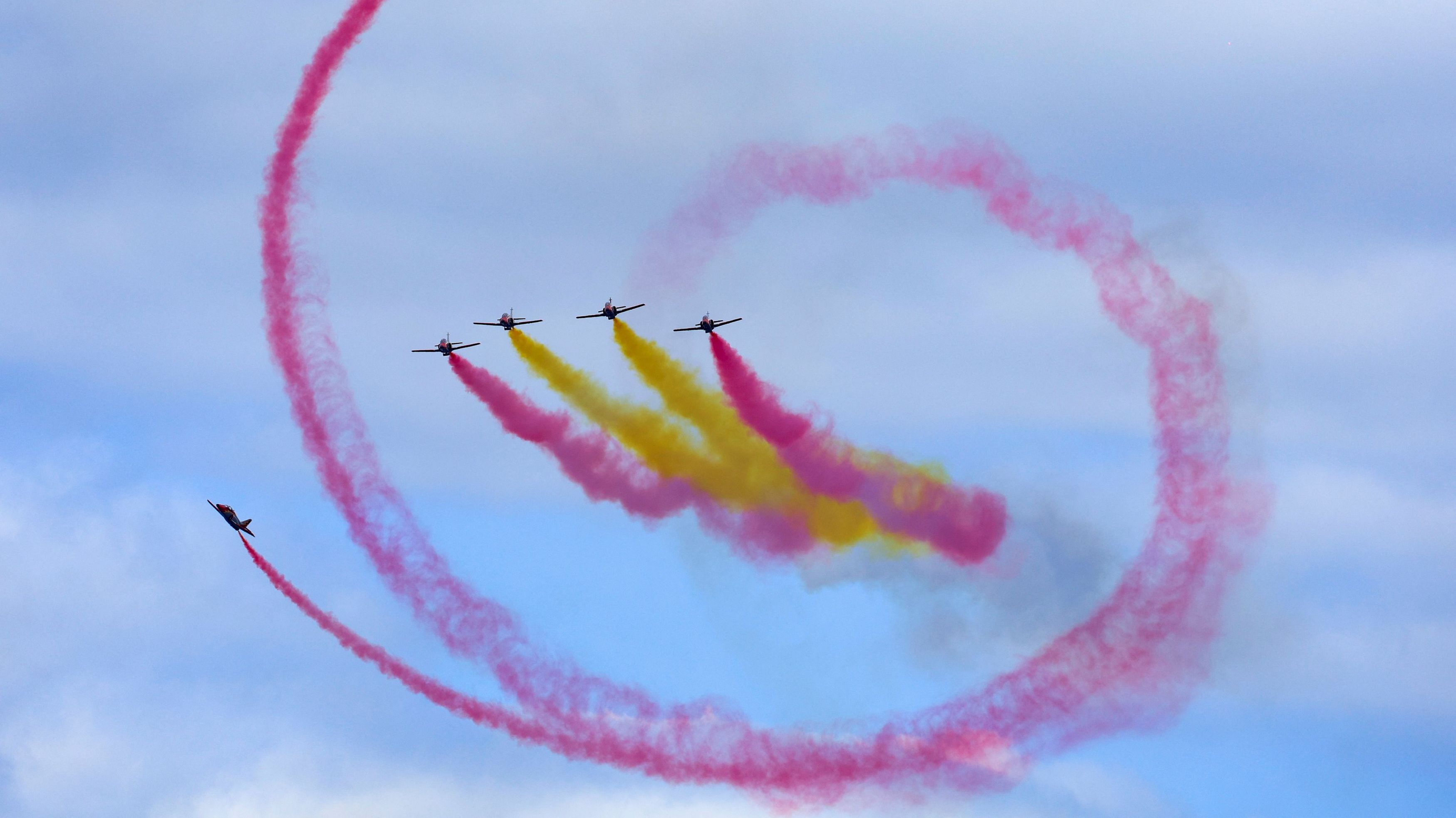 En el Día de las Fuerzas Armadas la Patrulla Águila ha realizado uno de sus últimos vuelos.