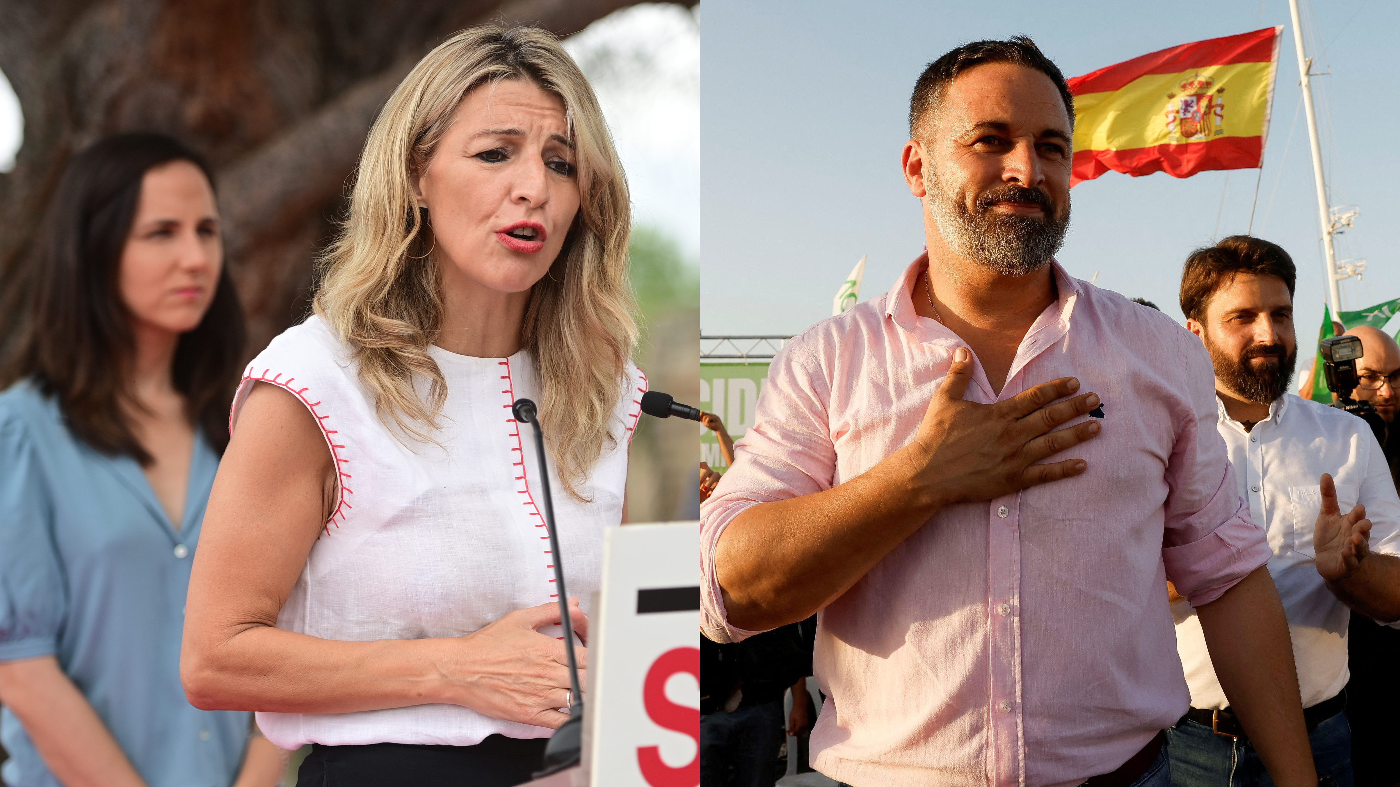 Díaz carga en un acto con Belarra contra la propuesta de Feijóo de "recortar" pensiones Abascal no aclara si apuesta por vincularlas al IPC