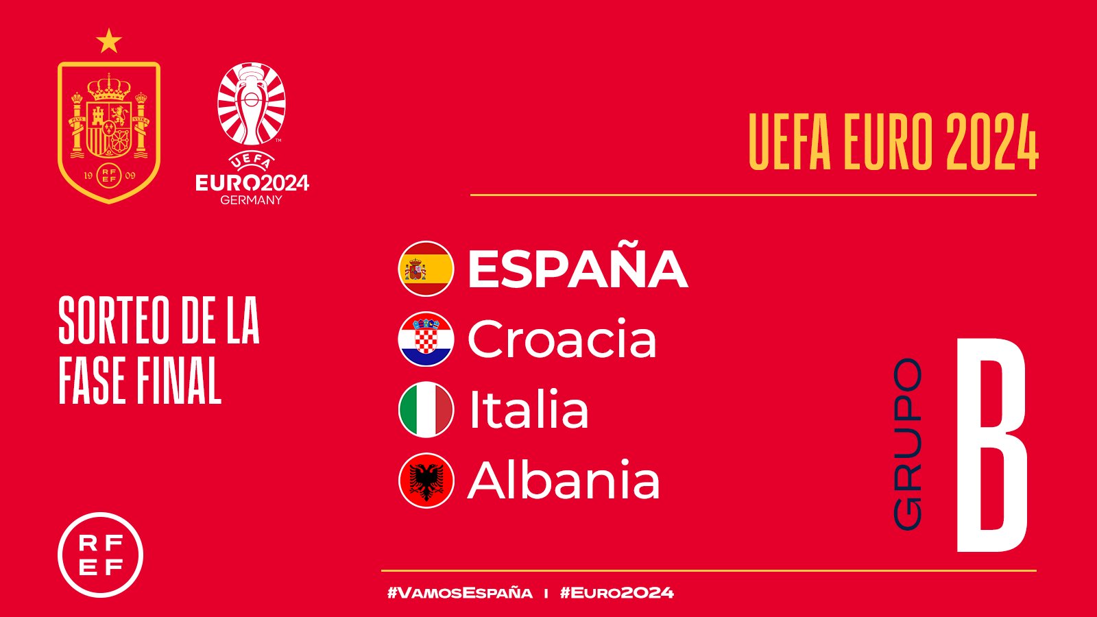 La suerte no sonrió a España en el sorteo de la Eurocopa al quedar encuadrada en el grupo de la muerte con Croacia, Italia y Albania, el grupo B....