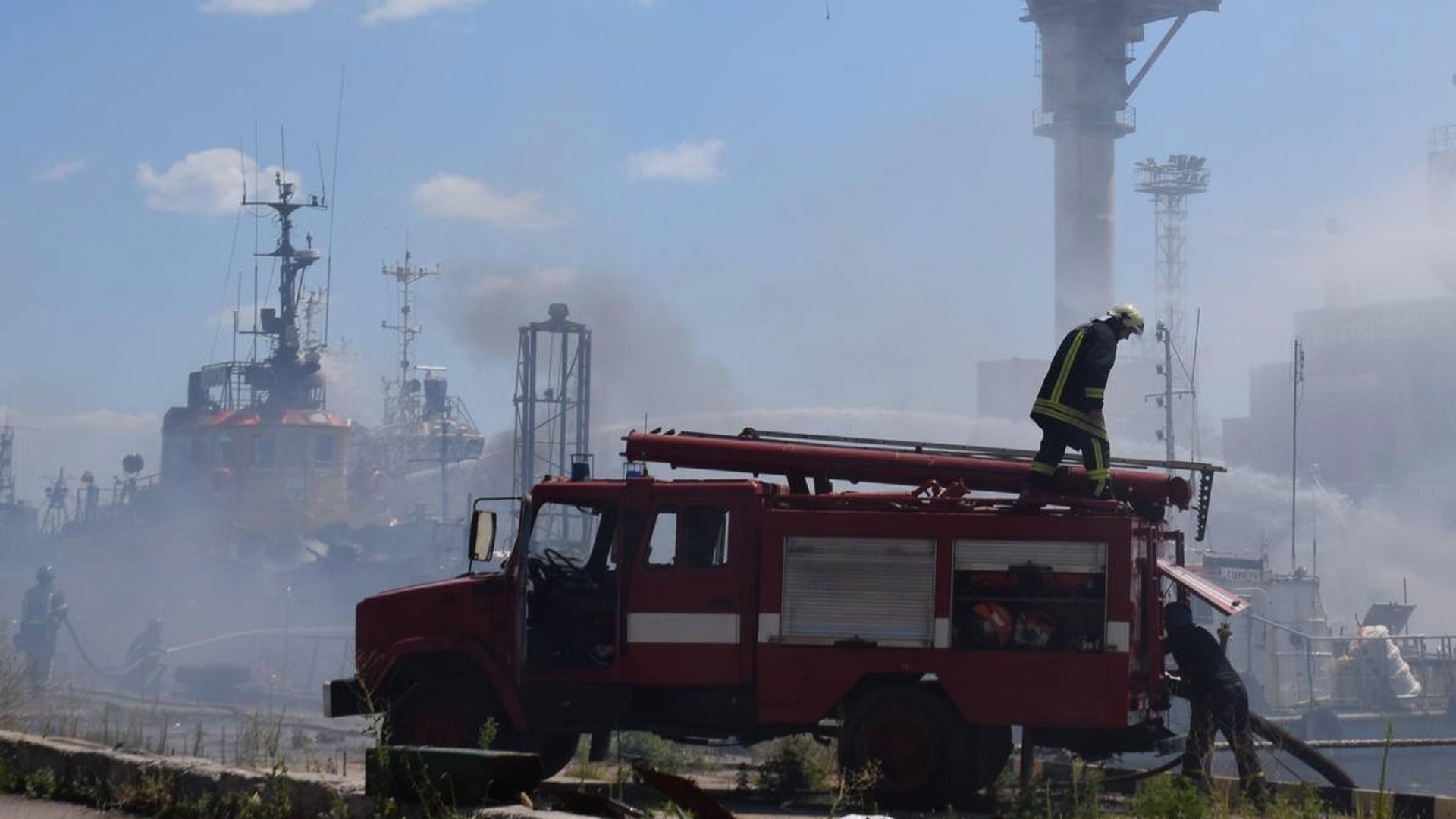 Foto: Bomberos en el puerto de Odesa (EFE/EPA/ODESA CITY HALL PRESS OFFICE)