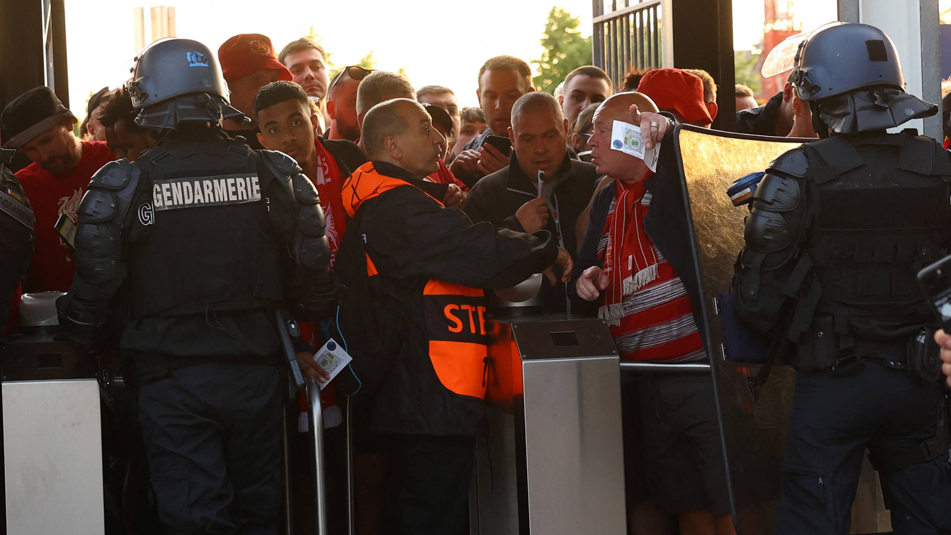 Un grave problema de organización generó el caos en los aledaños del Stade de France, en la periferia de París, que este sábado acogió la final de la Champions entre el Liverpool y el Real Madrid. Al parecer, muchos hinchas ingleses intentaron entrar al estadio con entradas falsas y esto provocó un bloqueo en varias puertas de acceso al campo para enfado de otros aficionados, mientras la UEFA tuvo que aplazar media hora el partido. La situación degeneró con altercados y cargas policiales. El club inglés ha mostrado su profunda decepción por lo ocurrido y ha solicitado una investigación formal para aclarar lo sucedido.