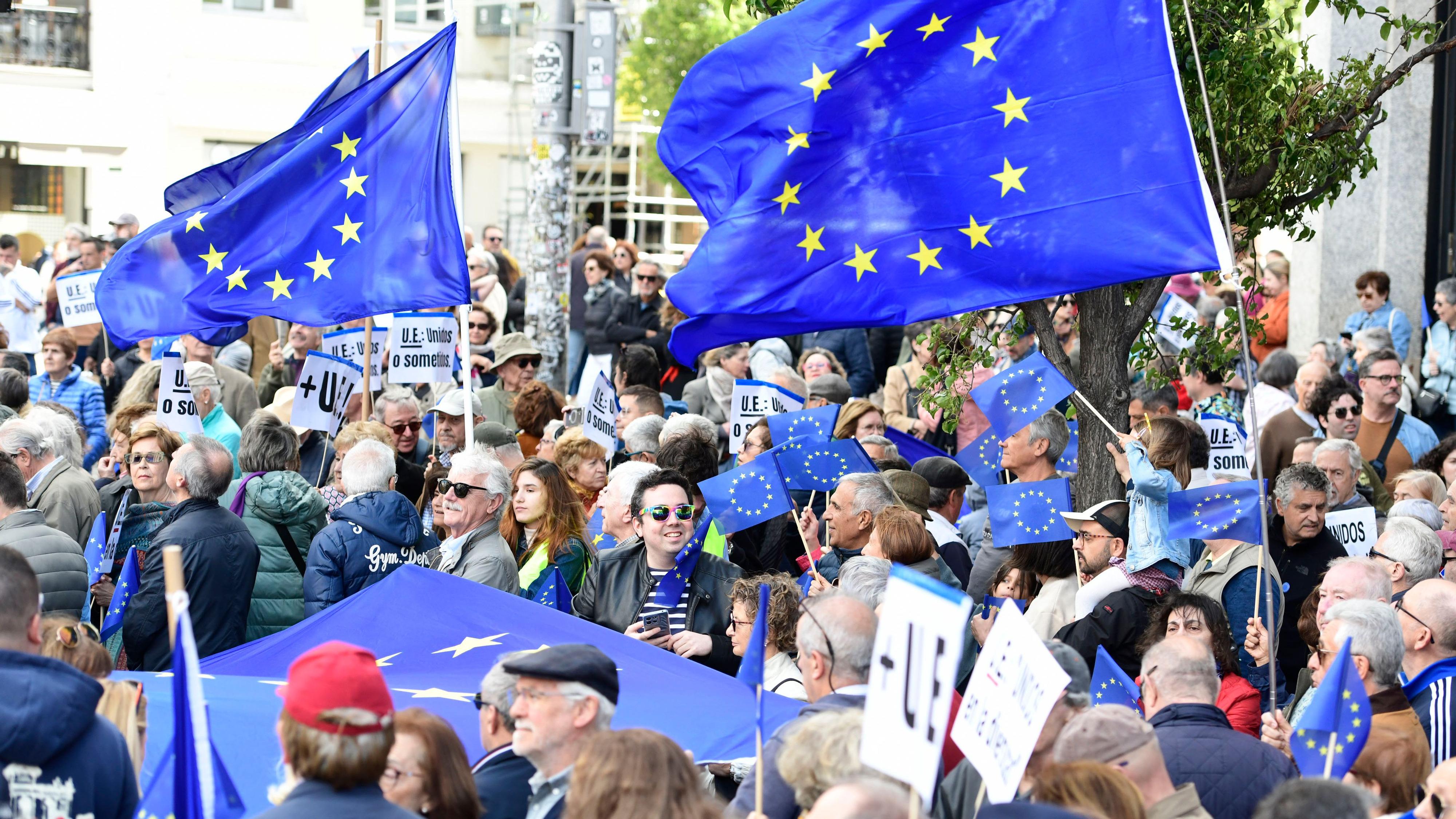 Concentración en Madrid para reivindicar el europeismo amenazado, consideran, por el auge de la extrema derecha o el trumpismo. Es una réplica del...