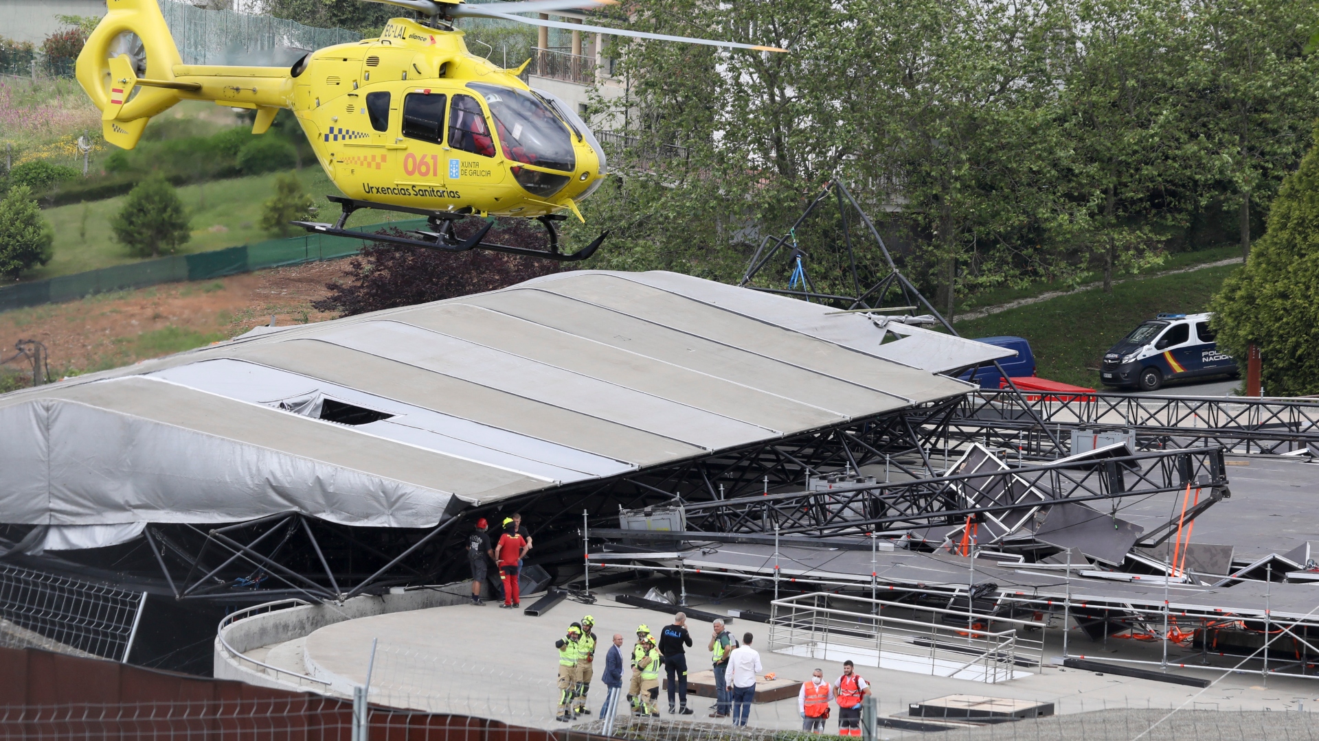 Al menos seis trabajadores heridos tras derrumbarse el escenario principal del festival O son do Camiño, en Santiago