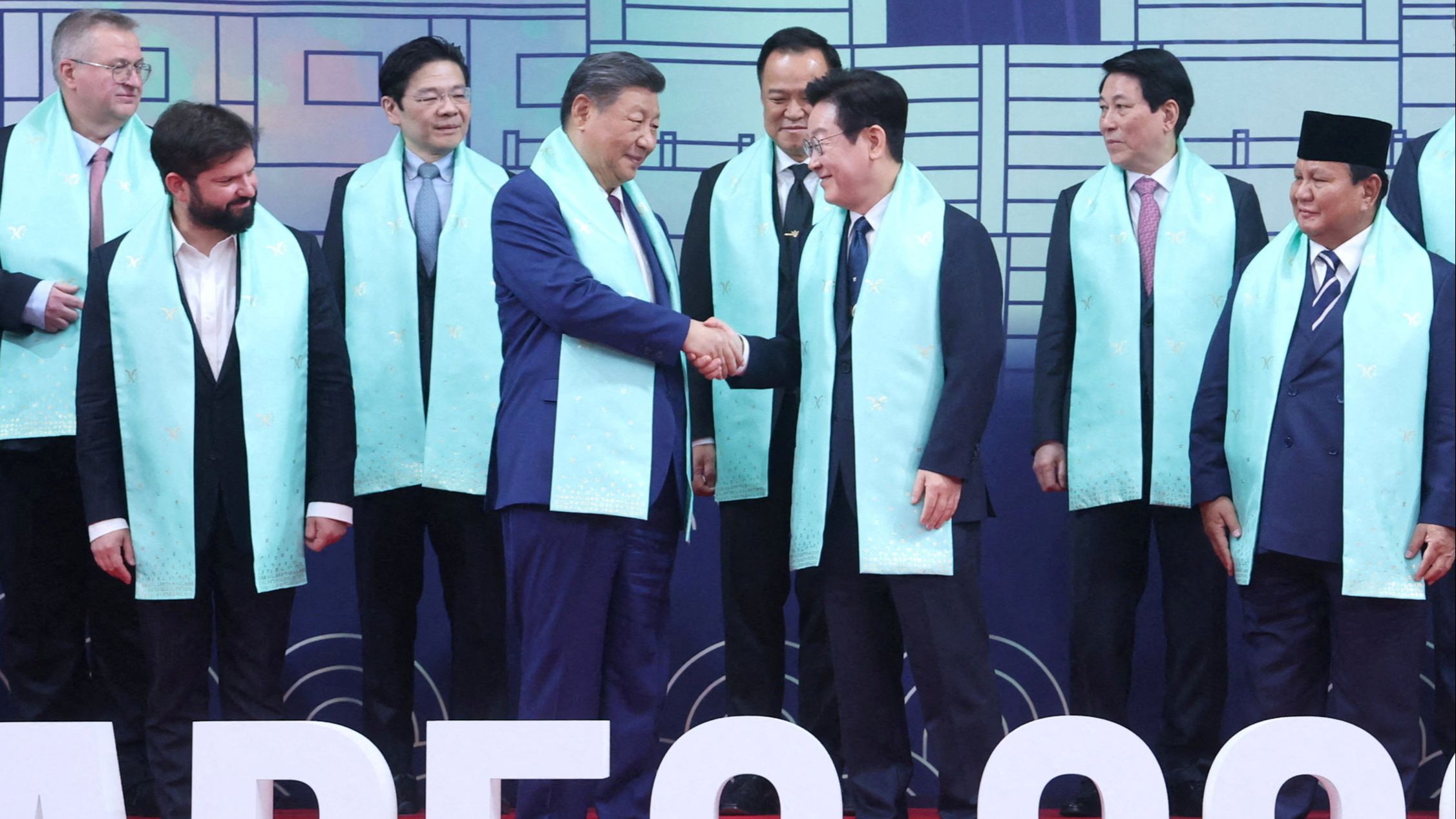 Foto: Yonhap/REUTERS — El presidente de Corea del Sur, Lee Jae-myung, saluda a su homólogo chino, Xi Jinping