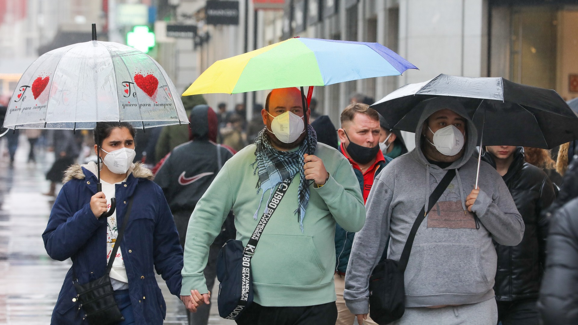 FOTO: Un grupo de personas con mascarillas pasea por el centro de Madrid. Marta Fernández / Europa Press.