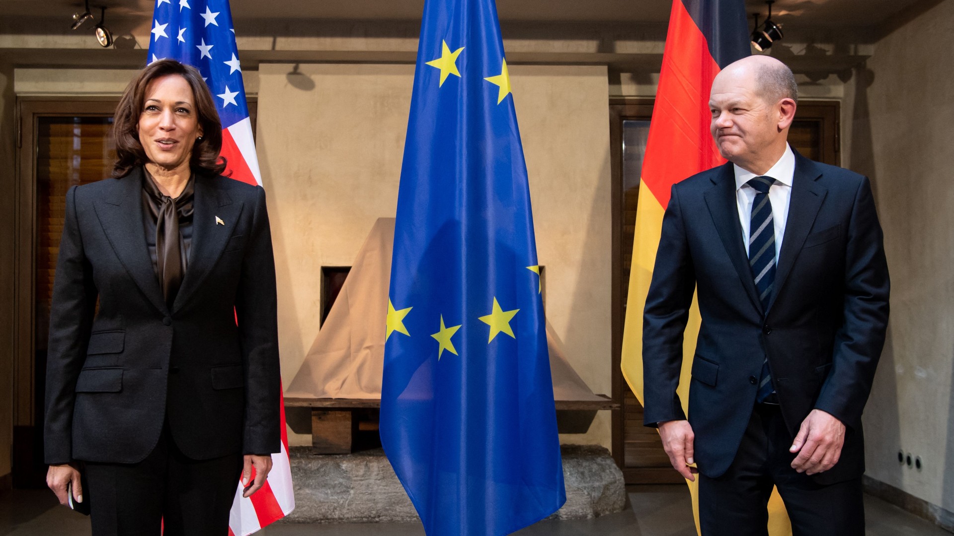Foto: El canciller alemán, Olaf Scholz, junto a la vicepresidenta de EE.UU., Kamala Harris (Sven Hoppe/POOL/AFP)