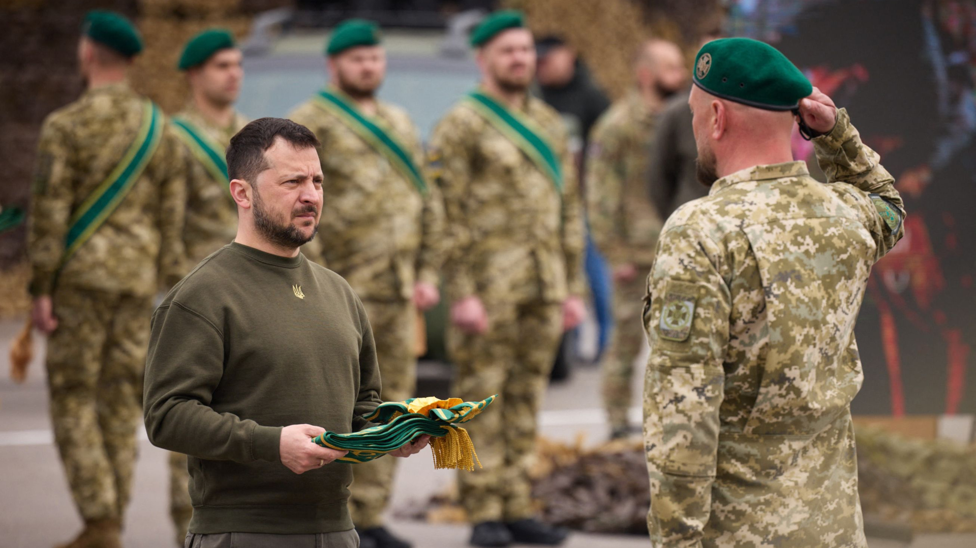 Foto: El presidente de Ucrania, Volodímir Zelenski, en una ceremonia de entrega de medallas a la Guardia Fronteriza (Ukrainian presidential press service/AFP)