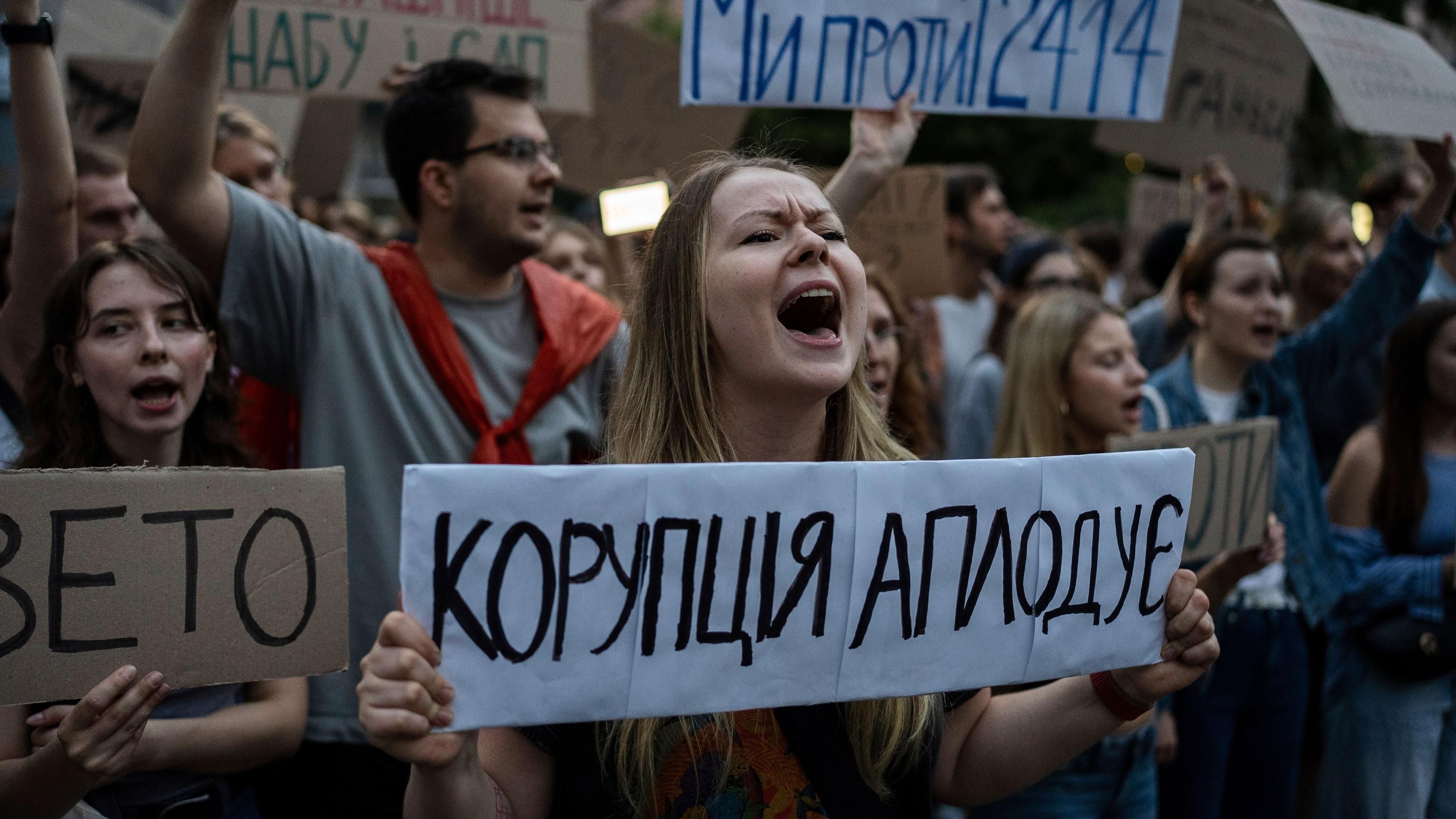 En Kiev, una manifestación contra su presidente, Volodímir Zelenski, la primera desde el comienzo de la guerra, ha exigido que el Gobierno de marcha...