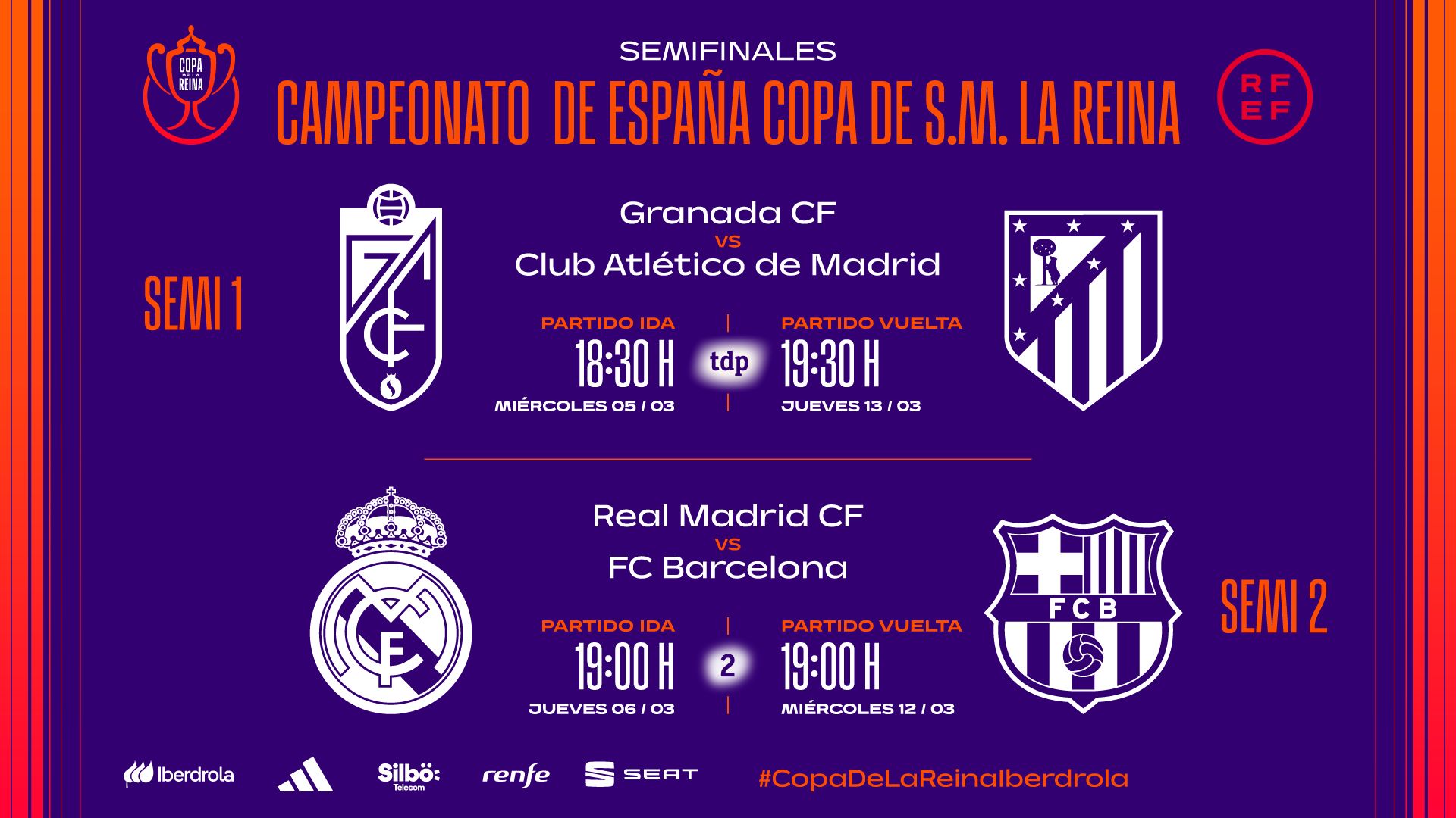 Este miércoles comienzan las semifinales de la Copa de la Reina con el partido Granada - Atlético de Madrid en el Nuevo Los Cármenes, partido de...