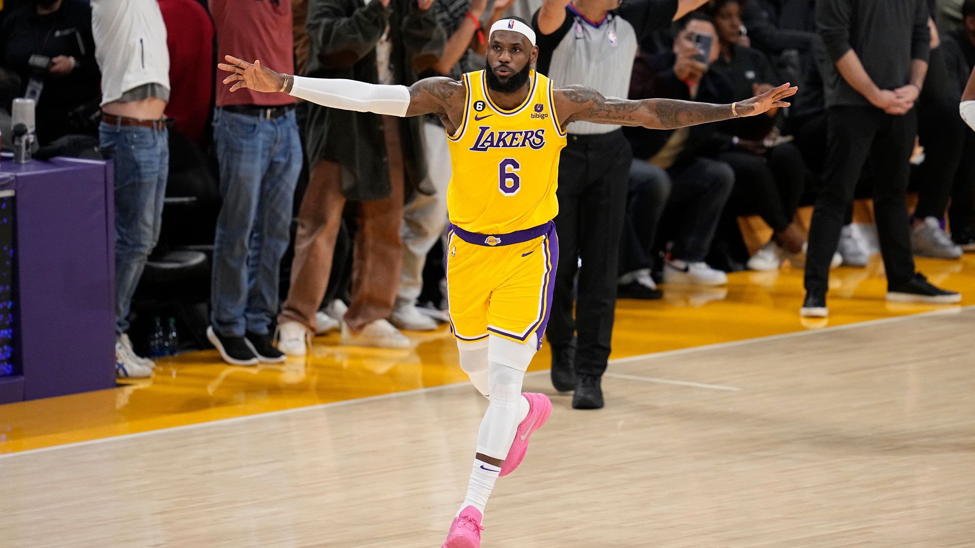Ante semejante gesta, la NBA interrumpió momentáneamente el partido y rindió tributo a un LeBron con lágrimas en los ojos y que dio a las gracias a su familia, a sus amigos y a sus compañeros.