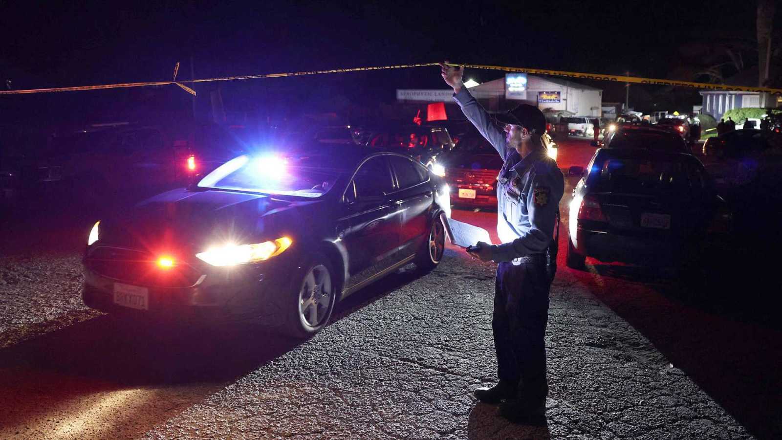 Foto: Un agente de la policía deja paso a un coche a la zona acordonada tras el tiroteo que se ha registrado cerca de una granja en Half Moon Bay, California. JUSTIN SULLIVAN / GETTY IMAGES NORTH AMERICA.