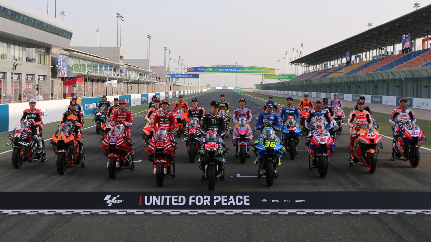 Los pilotos de MotoGP, unidos en un mensaje por la paz, han posado en el circuito de Losail para el inicio de temporada, que arranca este fin de...