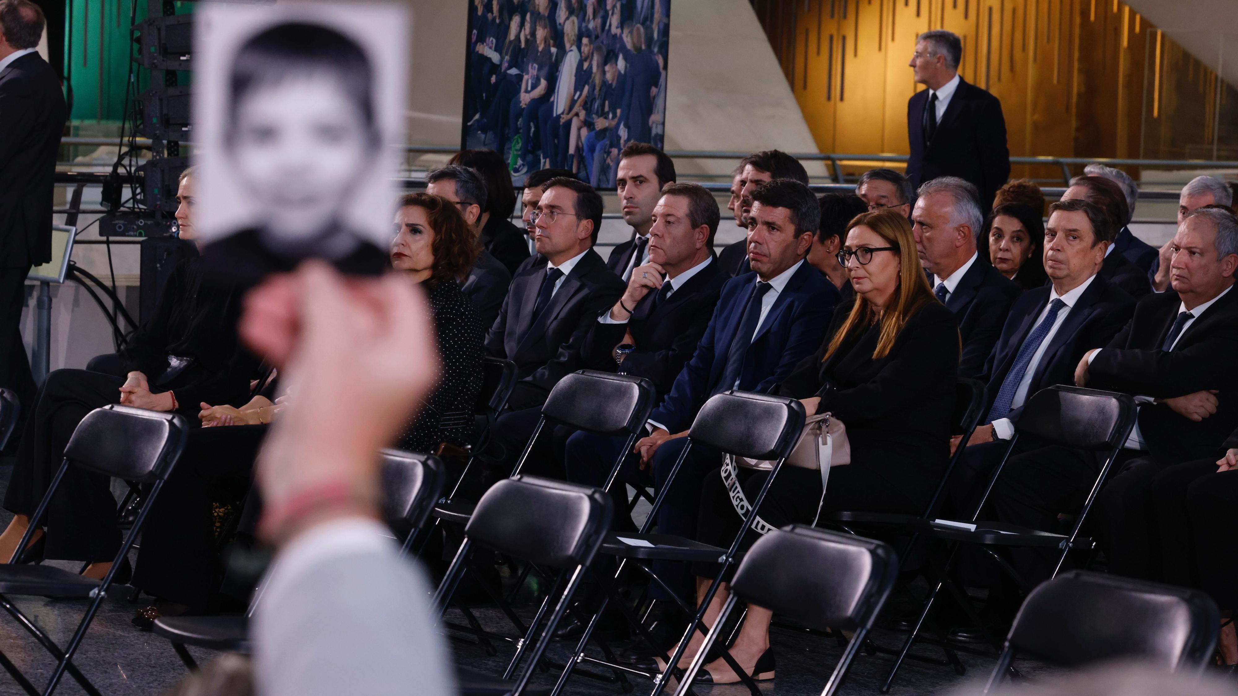 Mazón escuchó insultos de familiares de las víctimas, antes y después del homenaje de Estado en Valencia.