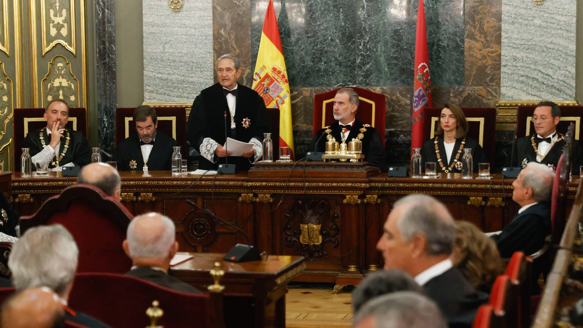 08/09/2023 00:02:32-El presidente interino del Supremo advierte: La situación de la justicia es "desoladora"... Señala a los partidos como responsables... Y les acusa de anteponer sus intereses políticos al mandato de la Constitución...En la apertura del Año Judicial, Francisco Marín pide que se aparquen los tribalismos para acabar con el deterioro de las instituciones judiciales... La renovación del organo de gobierno de los jueces lleva bloqueada casi cinco años, el mismo tiempo que duró el mandato del Poder Judicial.- Por primera vez, la memoria anual de la Fiscalía pone el foco en los casos de pederastia en la Iglesia... Pide que se investigue a quienes los han ocultado y alerta además del aumento de agresiones sexuales a menores... Un 45% más en 2022... El Fiscal General del Estado avisa: El discurso negacionista de la violencia de género influye directamente en la protección a las mujeres.- La tormenta Daniel ha dejado de descargar sobre el centro de Grecia...Los equipos de rescate temen lo que se pueden encontrar cuando baje el nivel del agua... Hay -al menos- 20 desaparecidos. - Mientras tanto, aquí -tras el paso de la DANA- continúan los trabajos en Toledo y Madrid... Hay tres personas a las que todavía no han podido localizar... Después de cinco días de búsqueda, se reduce la posibilidad de encontrarlas con vida. - Muy importante ese partido de hoy para encarrilar la clasificación a la Euro del próximo verano. Será ante Georgia, el encuentro lo podremos ver esta tarde a partir de las 17.30 aquí en la 1. Ayer los internacionales entrenaron por última vez, sin botas y sin los guantes de los porteros que quedaron olvidados en España, pero no se preocupen, que el material ya está de camino a Tiflis. Además en la previa del partido, fue inevitable no hablar del caso Rubiales...FOTOGRAFÍA: EFE/ Juan Carlos Hidalgo.