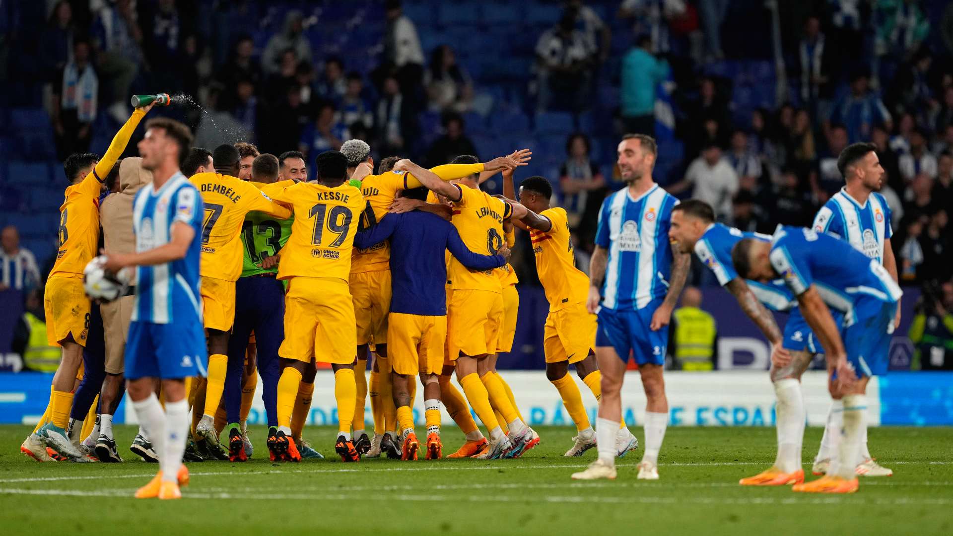 15/05/2023 00:04:04El Barça ha ganado la liga con una victoria matemática a falta todavía de cuatro jornadas para el final del campeonato. Miles de aficionados han celebrado el título hasta altas horas de la madrugada. Esta tarde, más celebración en una Rua junto al equipo femenino. - Muy diferente ha sido la imagen en el campo del Espanyol, al que el Barça ha ganado 2-4. Un grupo de radicales ha saltado al césped en Cornellá y ha obligado a los jugadores azulgrana a refugiarse en el vestuario. - Las elecciones en Turquía dejan un ajustadísimo resultado que -casi con total seguridad- obligará a ir a una segunda vuelta. Ninguno de los candidatos habría alcanzado el 50% de los votos en la primera ronda. Entre acusaciones cruzadas de fraude, la atención se centra en Erdogan, el actual presidente, que lidera el recuento y que todavía ve posible evitar esa segunda votación. Se juega su continuidad después de 20 años frente a una coalición de partidos de centro-izquierda - Volodímir Zelenski ha pasado esta noche en París. Cena de trabajo con el presidente Macron después de una gira europea que le han llevado a Roma, el Vaticano y Alemania. Mientras, sus tropas tratan de romper las líneas de defensa rusas en Bajmut. - Varios cohetes lanzados desde Gaza han puesto en peligro la tregua entre palestinos e israelíes. La Yihad Islámica dice que fue un error. El acuerdo ha llegado después de cinco días de escalada violenta: 33 fallecidos y decenas de viviendas destruidas. Netanyahu dice que ha cumplido su objetivo. - En Murcia, parte de la cosecha de sandía, brócoli y alcachofa se ha echado a perder col por una potente granizada a una semana de recoger la cosecha. Y en Navarra, las fuertes lluvias han desbordado varios ríos. Esto es Leiza, el agua ha inundado calles y locales comerciales. - El Barça cuato años después se proclama campeón de liga. El Barça consigue su título de liga número 27, el primero con Xavi en el banquillo. Además, fue ganando en el estadio de su vecino, el Espanyol con un doblete Lewandowski, que es el pichichi de la liga, y los goles de Balde y Koundé. - Esta noche saltaba la noticia en el Giro de Italia. El lider de la general, Remko Evenepul ha dado positivo en COVID-19 y se retira de la carrera. Unas horas antes se impuso en la crono y era uno de los favoritos a llevarse el triunfo final.