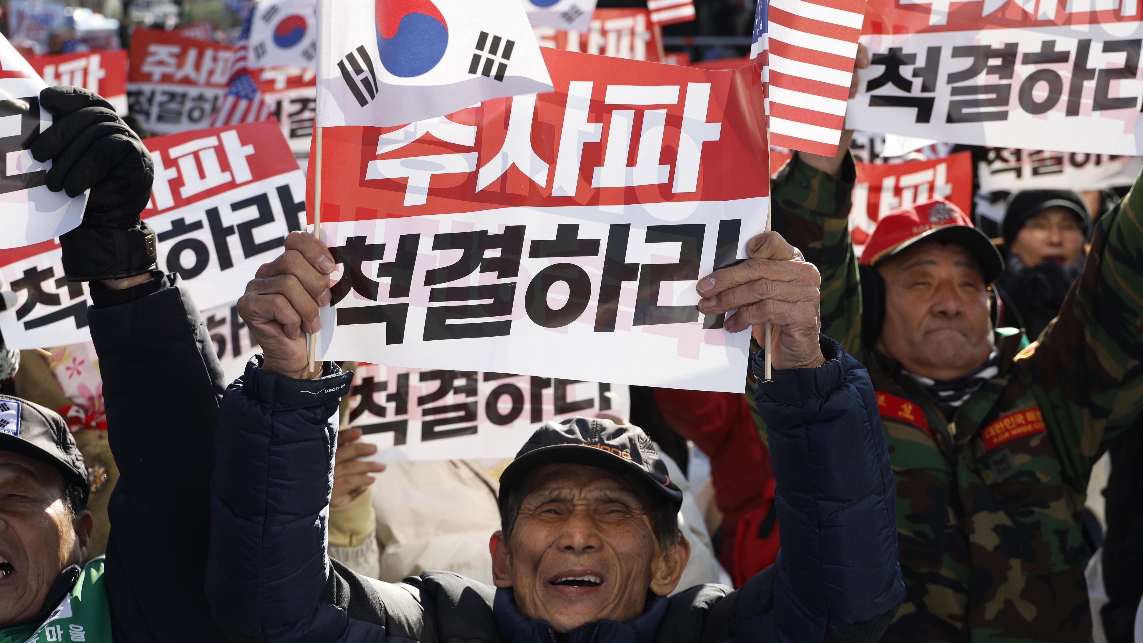 Imagen en directo desde Seúl, en Corea del Sur, donde miles de personas siguen manifestándose pidiendo la dimisión del presidente Yoon Suuk.