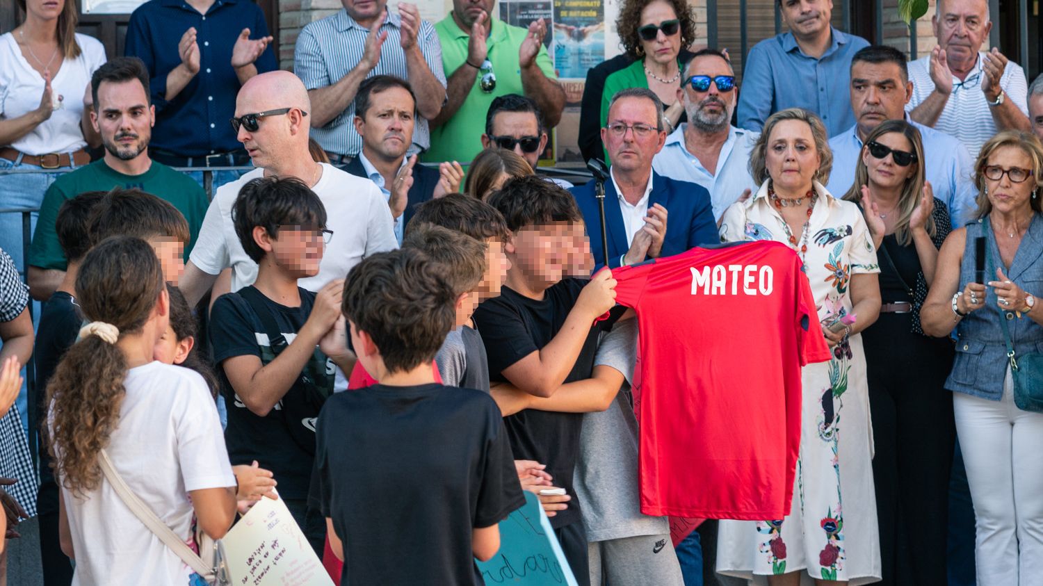FOTO: Concentración en el Ayuntamiento de Mocejón por el asesinato de un niño que jugaba al fútbol. Juan Moreno / Europa Press