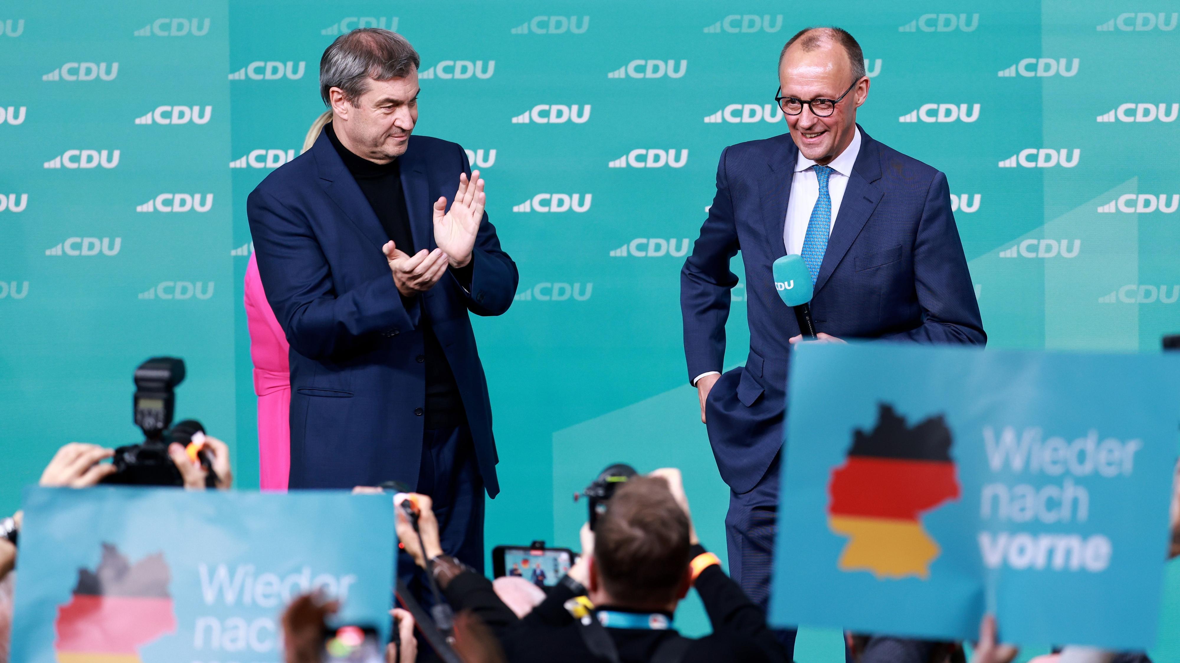 FOTO: El candidato de Unión Demócrata Cristiana (CDU), Friedrich Merz, celebra la victoria. EFE/EPA/HANNIBAL HANSCHKE