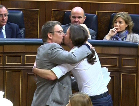 El beso de Pablo Iglesias y Xavier Domènech ha inundado las redes sociales