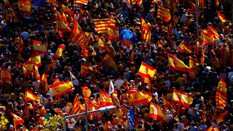 La gente se ha manifestado de forma masiva otra vez por las calles de Barcelona en favor de la unidad nacional y en contra de la independencia. --...