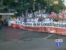 07/09/2011 00:04:24El Senado vota hoy la propuesta de reforma de la Constitución. La Comisión Constitucional rechazaba ayer todas las enmiendas.El Senado vota hoy la propuesta y los sindicados piden un referendum. Sindicatos, partidos de izquierda y el movimiento 15M se manifestaron ayer en varias ciudades, la más multitudinaria en Madrid. Protestan por el prodecimiento de urgencia con el que se ha aprobado la reforma.-- El Tribunal Constitucional alemán falla hoy si es legal que el país participe en el rescate de Grecia, Irlanda y Portugal. Estaremos también pendientes de los mercados. Wall Street arrastó ayer a las bolsas europeas. El Ibex está en niveles de marzo de 2009. El presidente del gobierno insiste en que España está lejos de un rescate y que se va a financiar por si misma.-- Hoy empieza el curso en Navarra con menos profesores en las aulas y la convocatoria de movilizaciones para el viernes. Los docentes de Madrid también han convocado protestas para hoy y habrá huelga en secundaria la semana que viene. Los de Galicia se manifestarán el viernes.Por otra parte, la Generalitat catalana presenta hoy su recurso contra la decisión del Tribunal Superior de Justicia de equiparar el castellano y el catalán en las aulas.-- El gobierno de Burkina Faso niega que vaya a conceder asilo a Gadafi. El ministro de comunicación reconoce que no saben dónde está el coronel libio. Se sospechaba que podía haber huido, pero Níger ha negado que estuviera en el convoy de cientos de sus seguidores que cruzó ayer la frontera. En Bani Walid rebeldes y gadafistas siguen negociando la rendición.-- Para los que dudan que el hombre llegó a la Luna, la Nasa ha publicado las fotos de las huellas de las misiones Apolo. Son las imágenes más nítidas tomadas hasta ahora del rastro que dejaron los astronautas al salir del módulo lunar en las misiones Apolo 12, 14 y 17. En la superficie lunar no hay viento y esas muestras están intactas 40 años después de aquellos viajes. DEPORTES: La selección española de fútbol ya está clasificada para la Eurocopa de 2012 donde defenderá el título después de la victoria de ayer ante Liechtenstein por goleada. Hasta seis goles marcó La Roja. Negredo, Xavi, Ramos y Villa fueron los autores. La otra selección, la de baloncesto, se enfrenta hoy a Alemania en la segunda fase del Europeo. Y en nueva etapa de la Vuelta a España después de una accidentada jornada y atípica victoria.