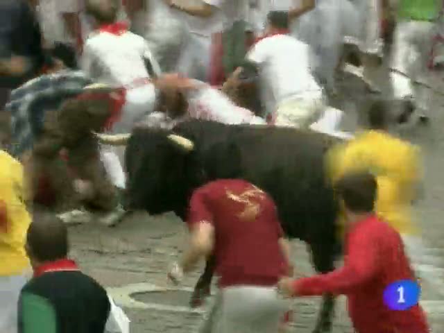 Encierro muy peligroso el de los Cebada Gago.Fugado ha hecho casi todo el recorrido en solitario y ha corneado a tres corredores en el tramo de...