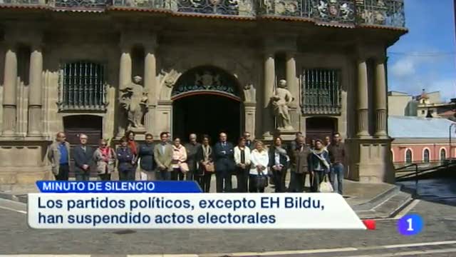 Representantes de todos los partidos, excepto Bildu, guardan un minuto de silencio frente al Ayuntamiento de Pamplona en condena por el asesinato de la presidenta de la Diputación de León, Isabel Carrasco. Los partidos, excepto Bildu, suspenden sus actos de campaña. Yolanda Barcina condena el asesinato de la dirigente del PP. Navarra, una de las seis autonomías que deberá presentar sus planes de ajuste al Gobierno tras incumplir según hacienda el objetivo de déficit. Nuevas colas en el estadio de El Sadar para el partido decisivo del próximo domingo frente al Betis. la afición cree que Osasuna salvará la categoría. - 13/05/2014